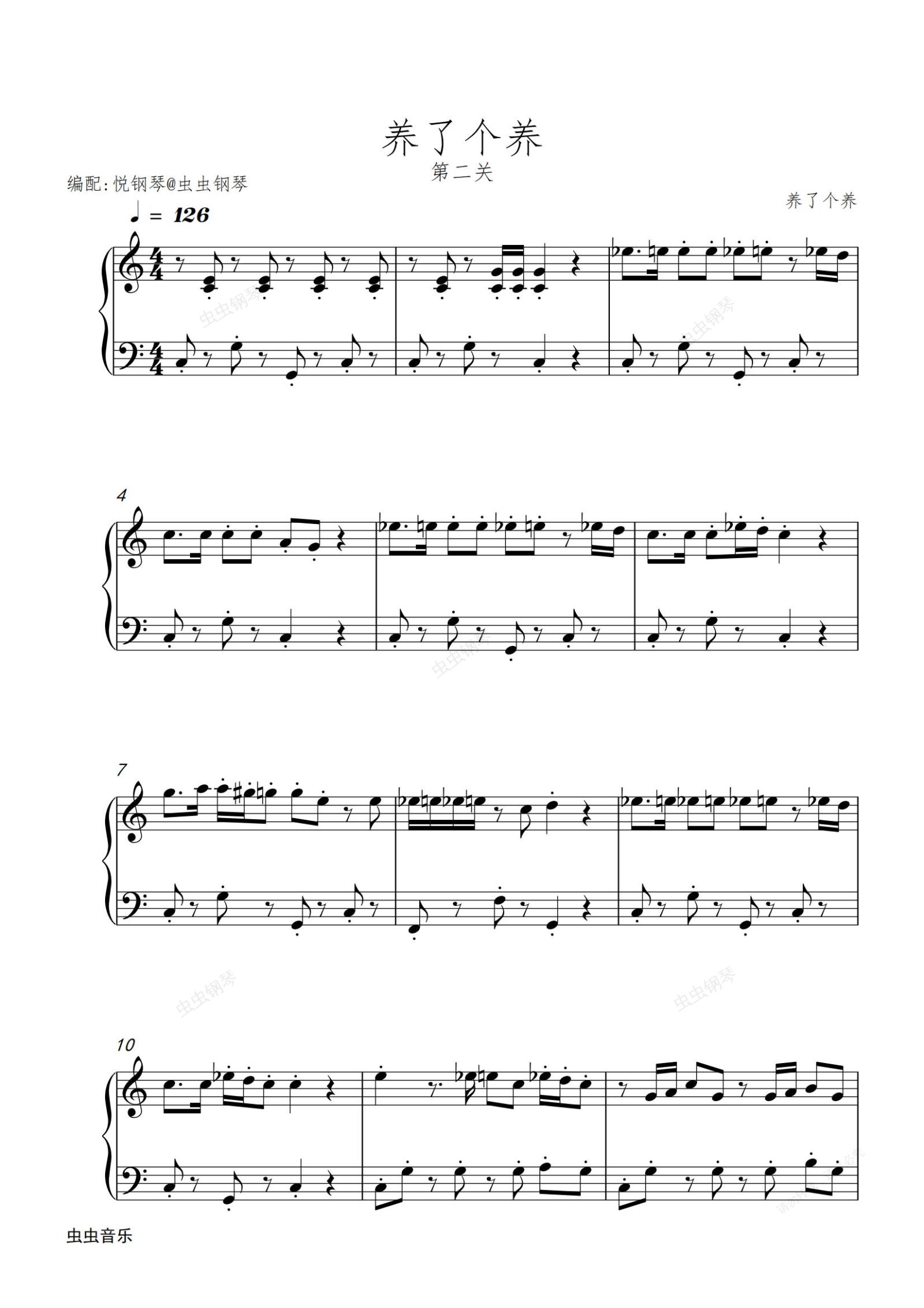 钢琴谱:养了个养 第二关