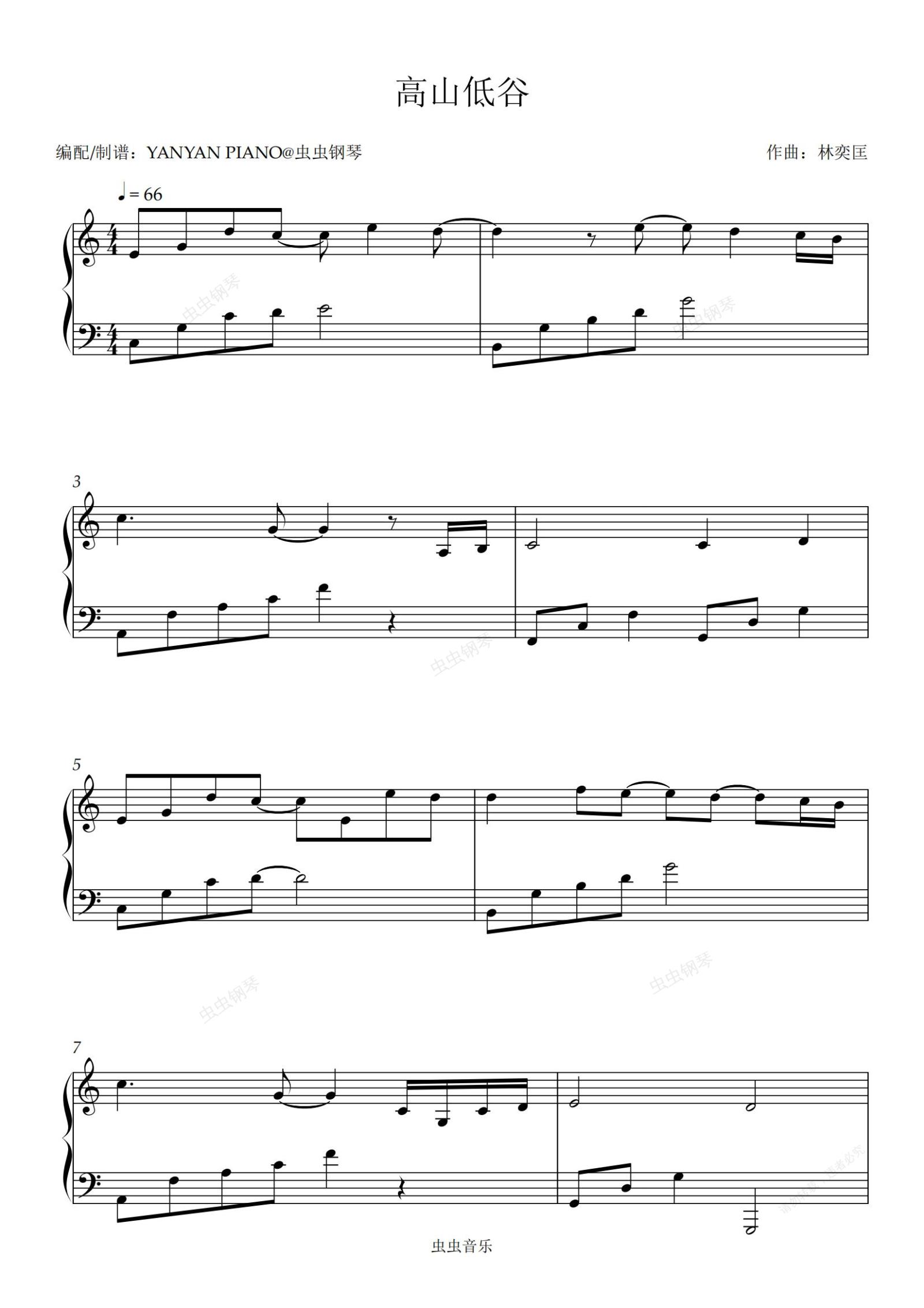钢琴谱:好听易弹【高山低谷】林奕匡