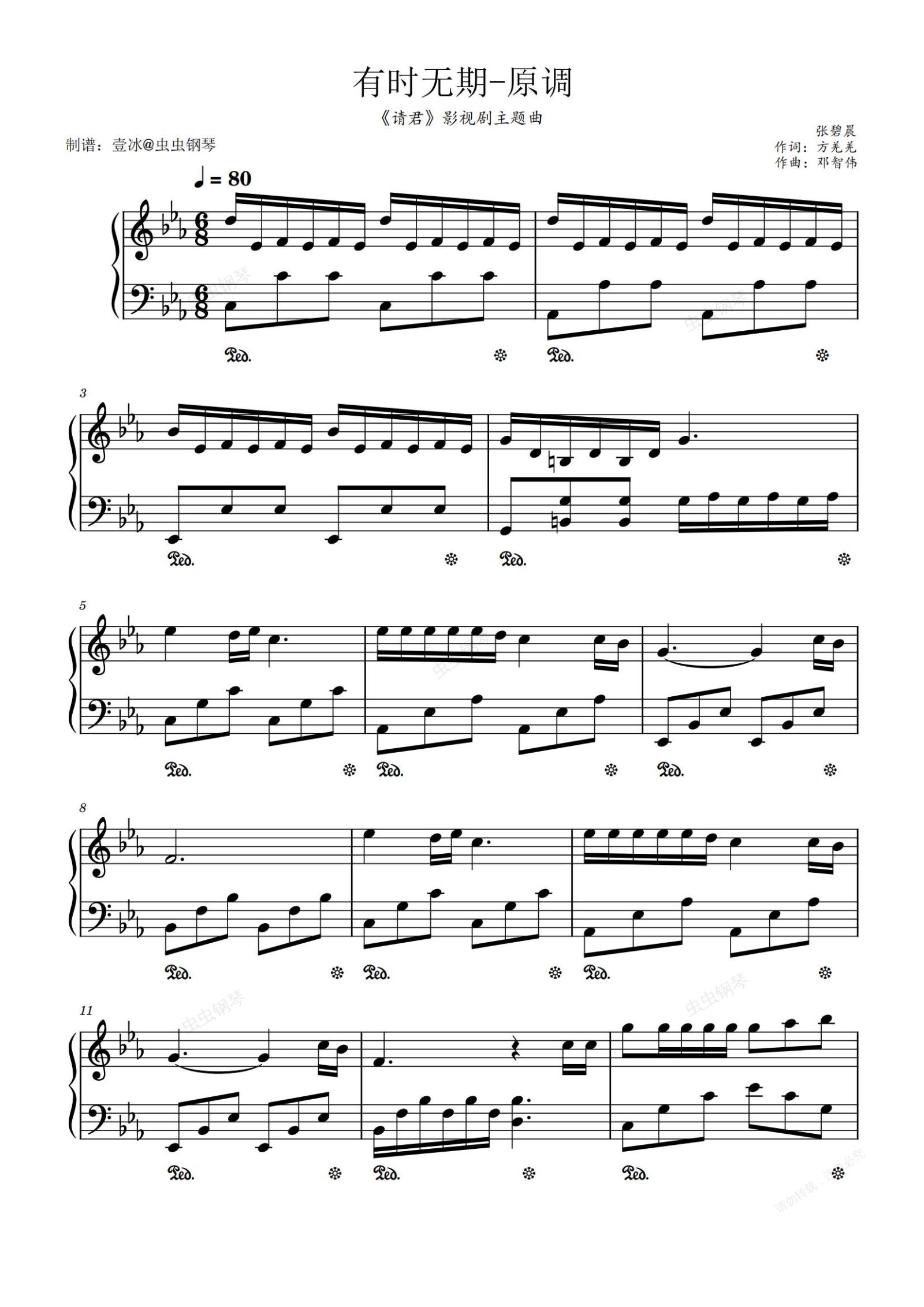 钢琴谱:有时无期//《请君》影视剧主题曲-原调