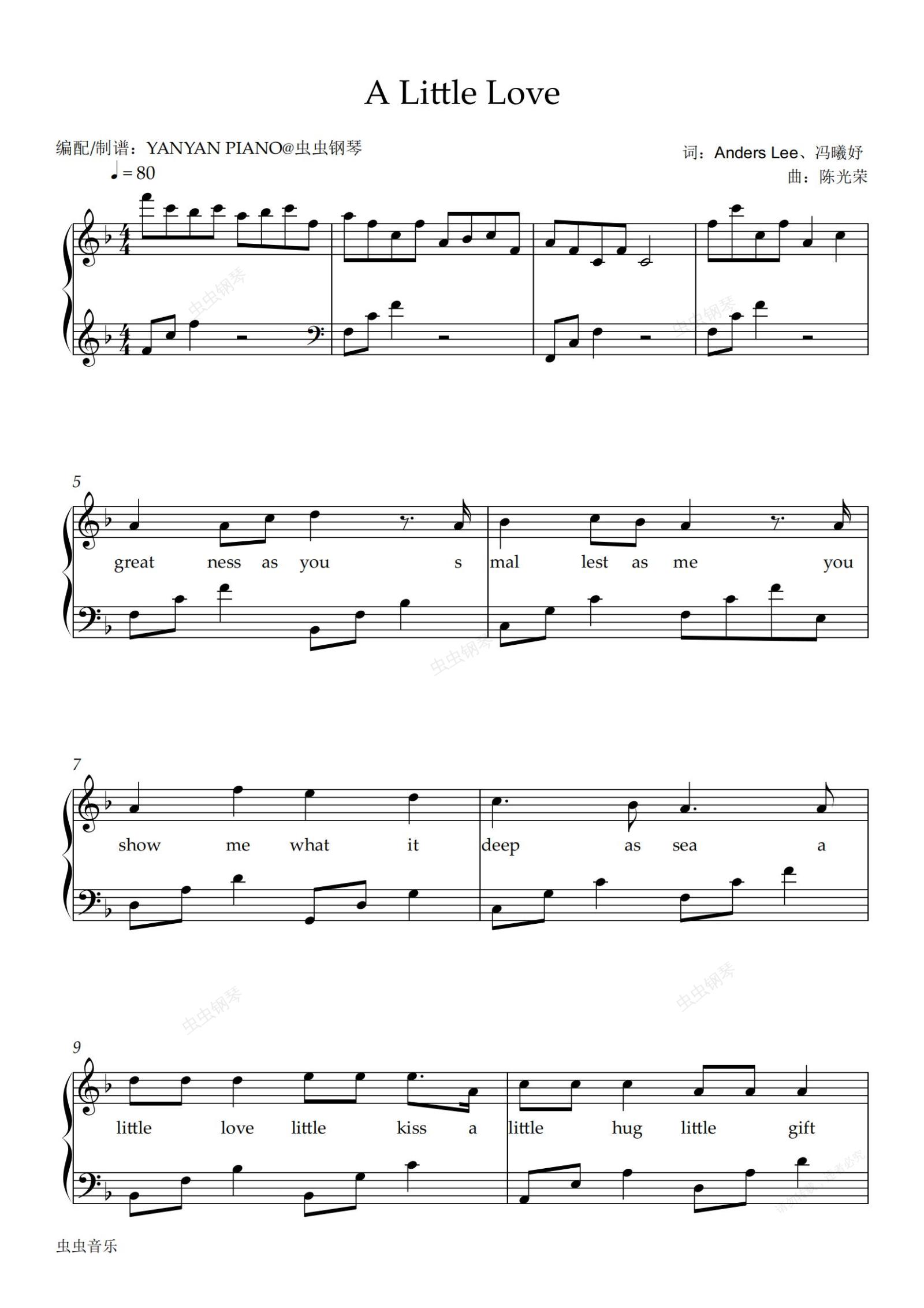 钢琴谱:好听易弹【A Little Love(世上只有)】冯曦妤/容祖儿