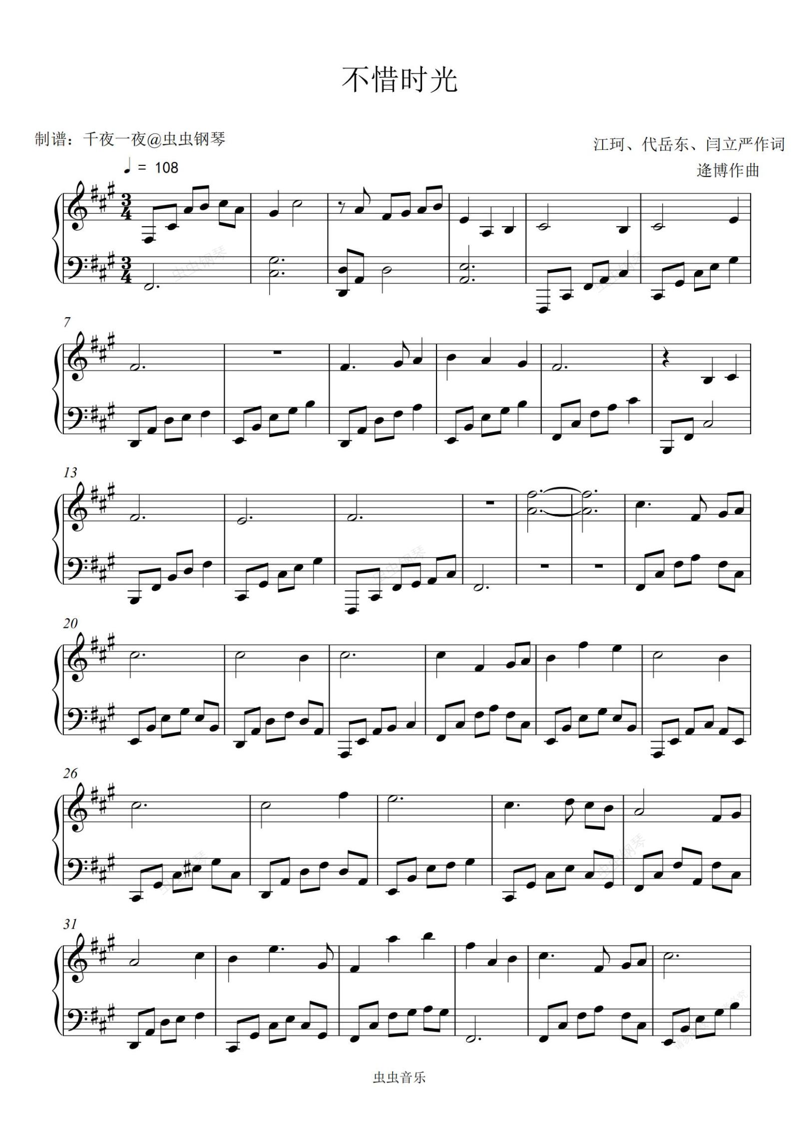 钢琴谱:《不惜时光》张靓颖(梦华录主题曲片尾曲