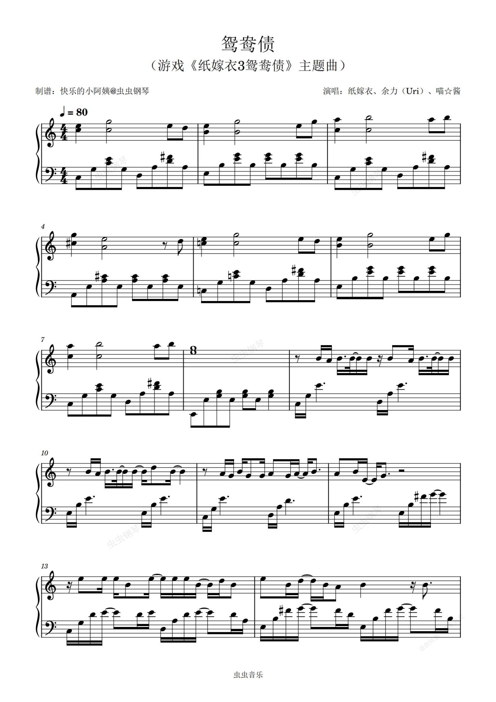 钢琴谱:鸳鸯债-C调(游戏《纸嫁衣3鸳鸯债》主题曲)