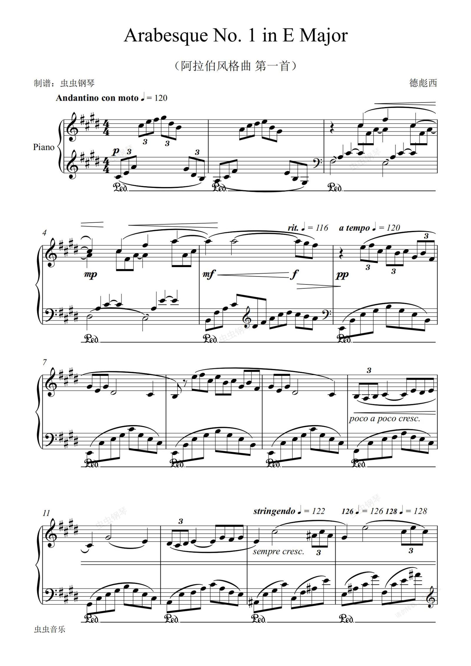 钢琴谱:Debussy Arabesque No. 1 in E major(德彪西-阿拉伯风格曲 第一首)