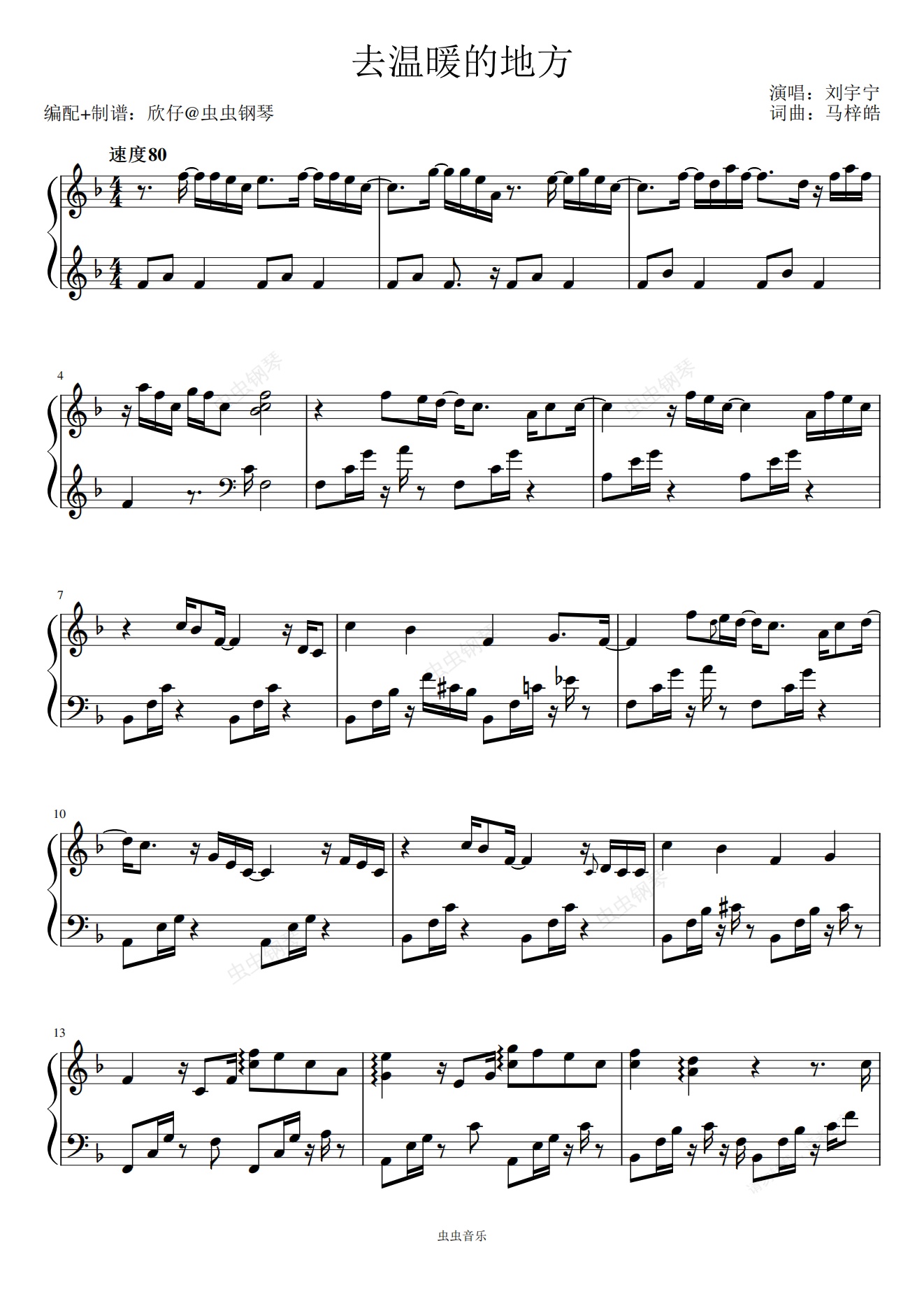 钢琴谱:刘宇宁-F《去温暖的地方》(《恋爱的夏天》、完整版)