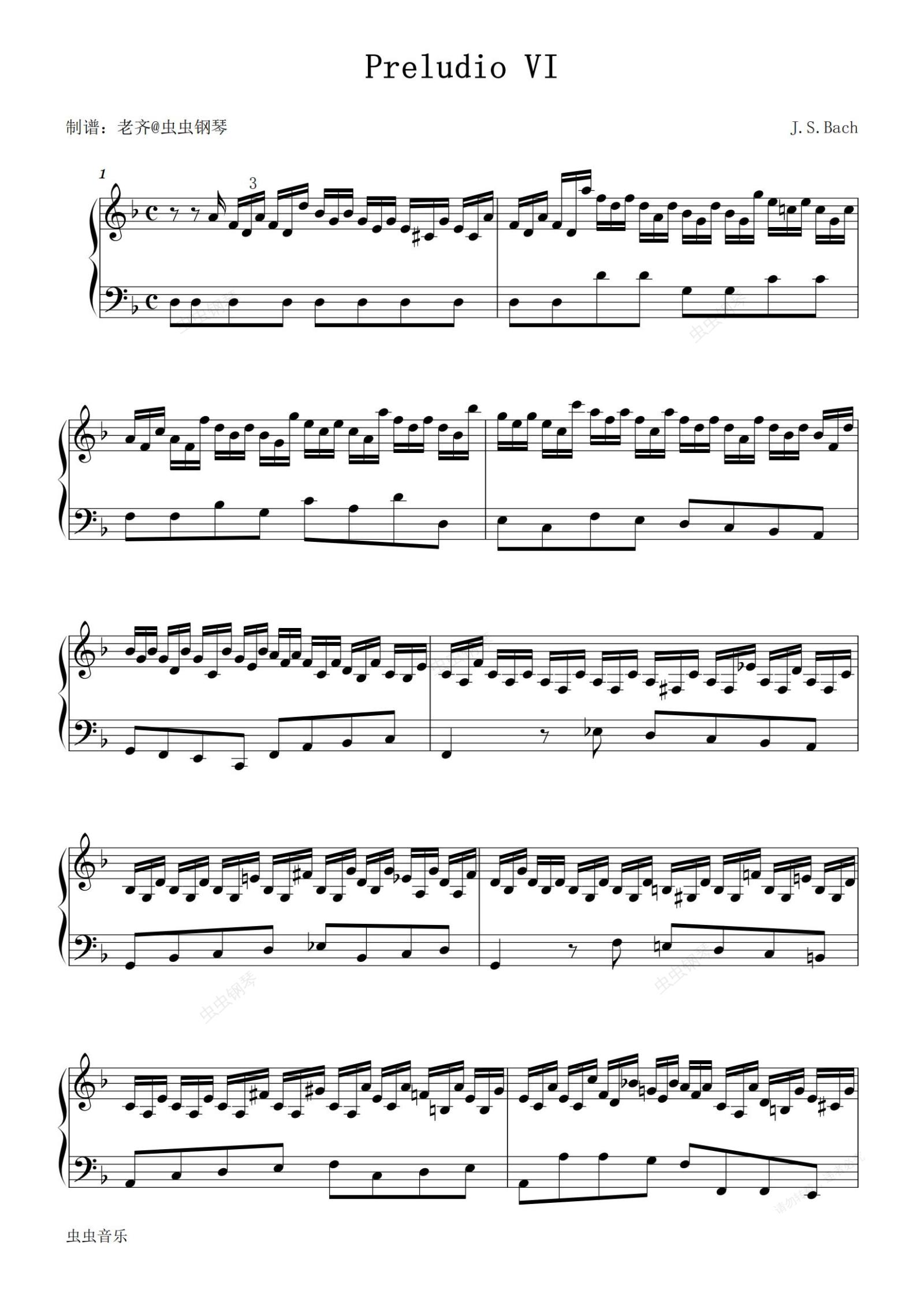 钢琴谱:【巴赫十二平均律】第一册 D小调第六首BWV 851《前奏曲》和《赋格》