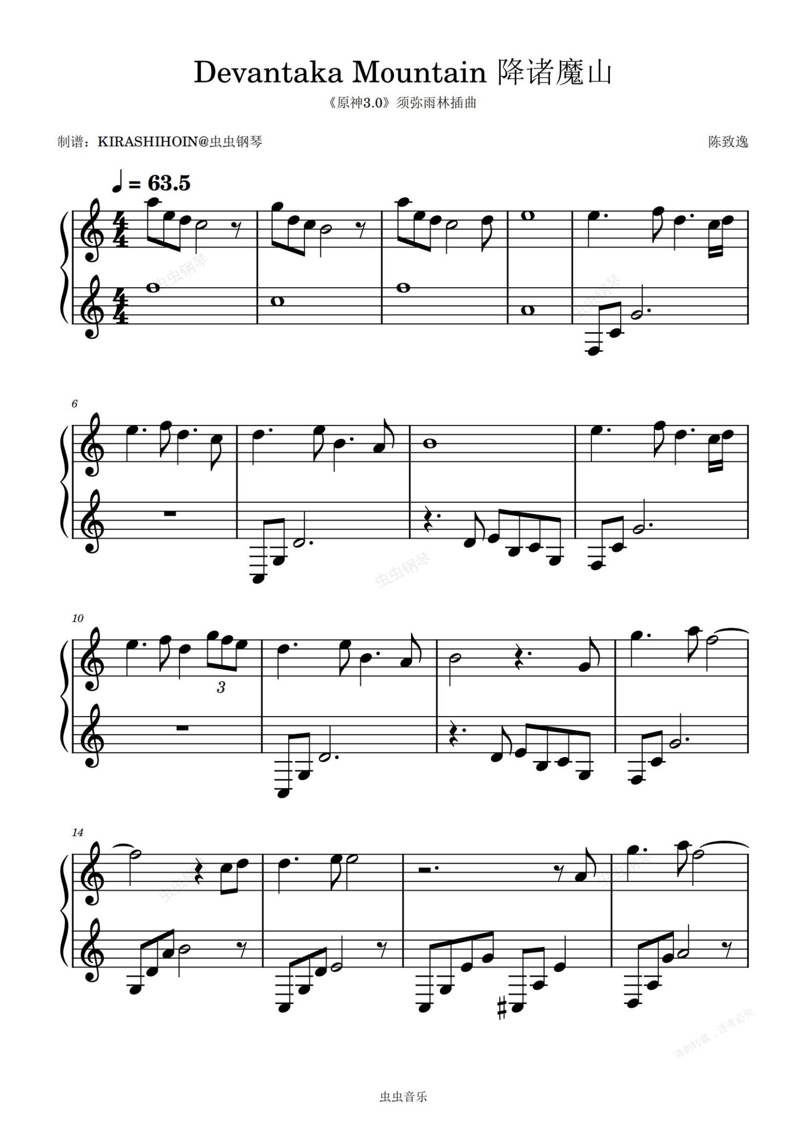 钢琴谱:Devantaka Mountain 降诸魔山(《原神3.0》须弥雨林插曲)- 陈致逸