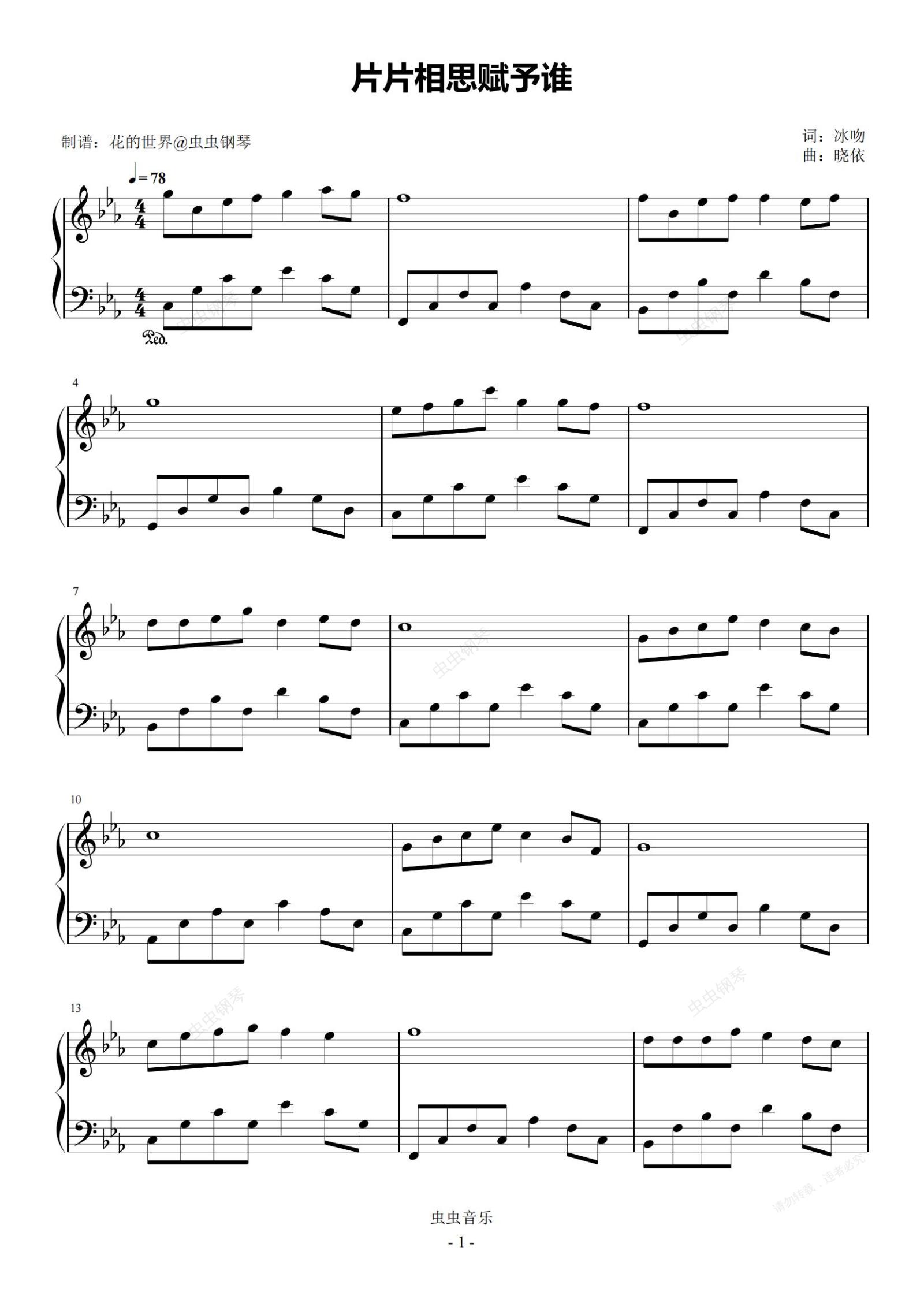 钢琴谱:片片相思赋予谁 原调简易版 晓依
