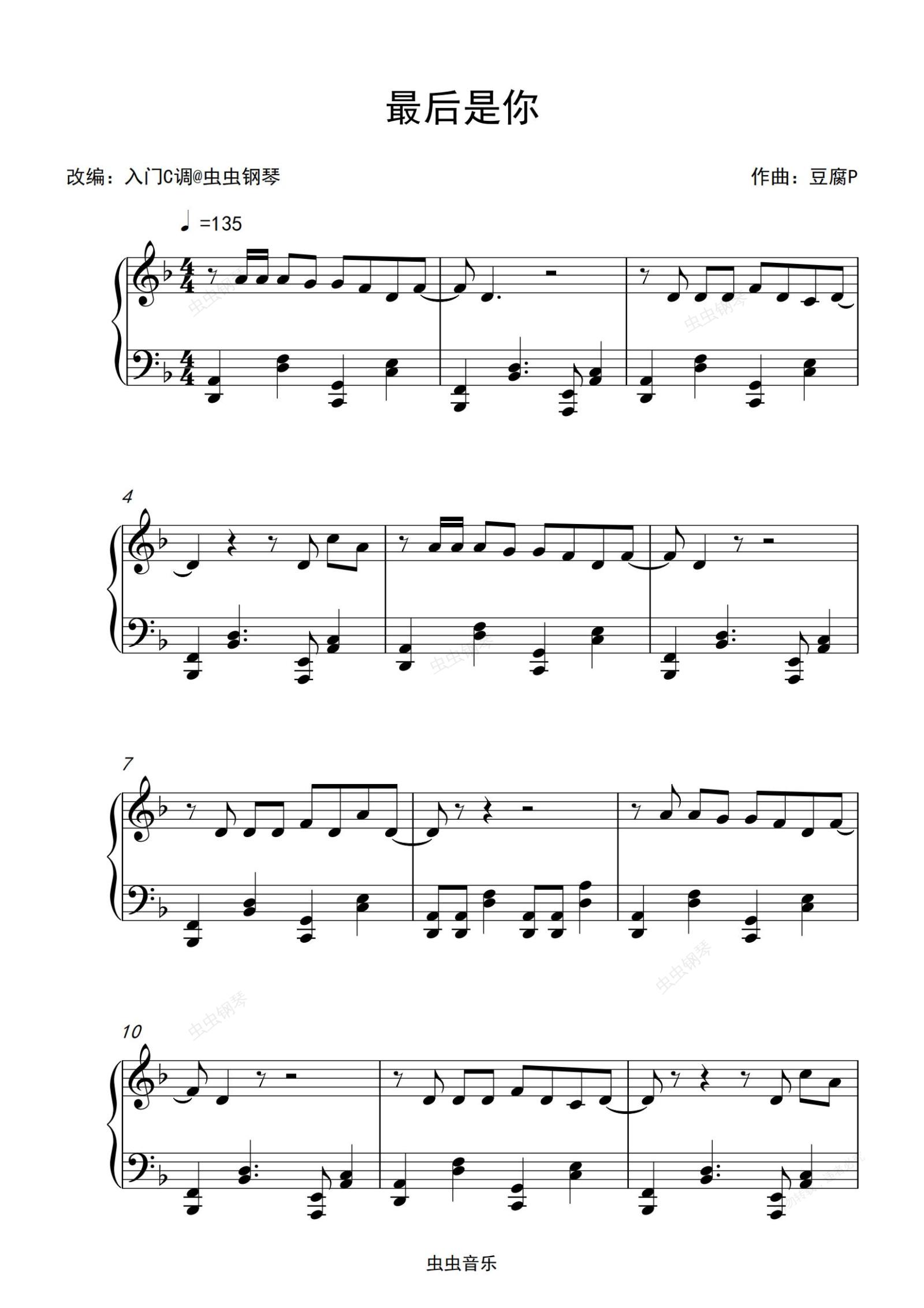 钢琴谱:188男团同人曲《最后是你》原调简单版
