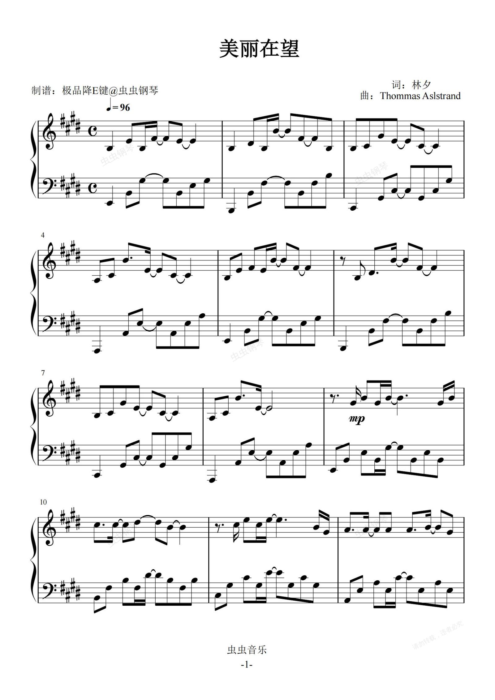 钢琴谱:美丽在望(容祖儿)2022倾心优化