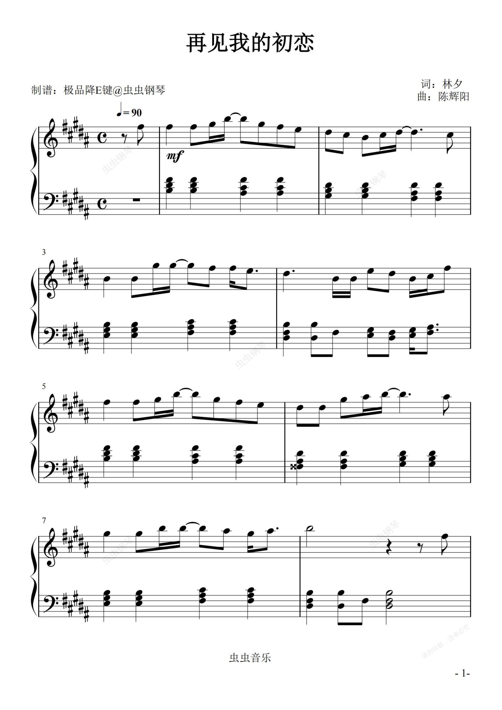 钢琴谱:再见我的初恋(容祖儿)2022倾心优化