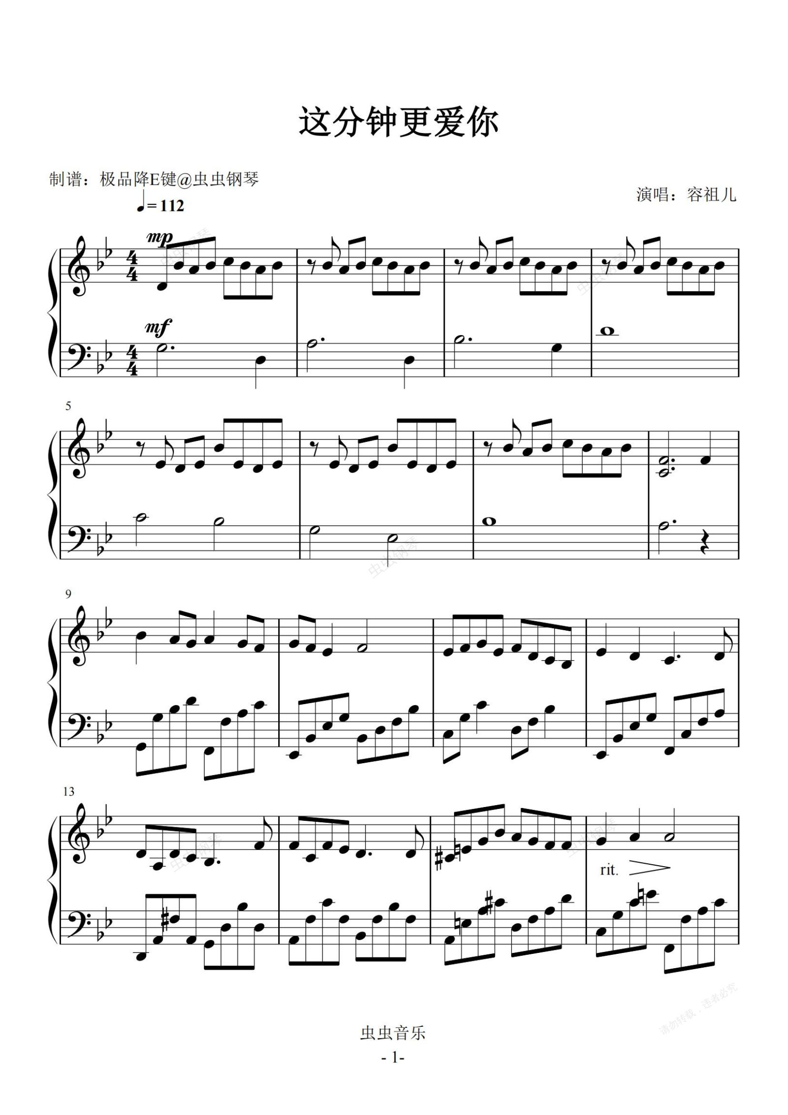 钢琴谱:这分钟更爱你(容祖儿)2022倾心优化