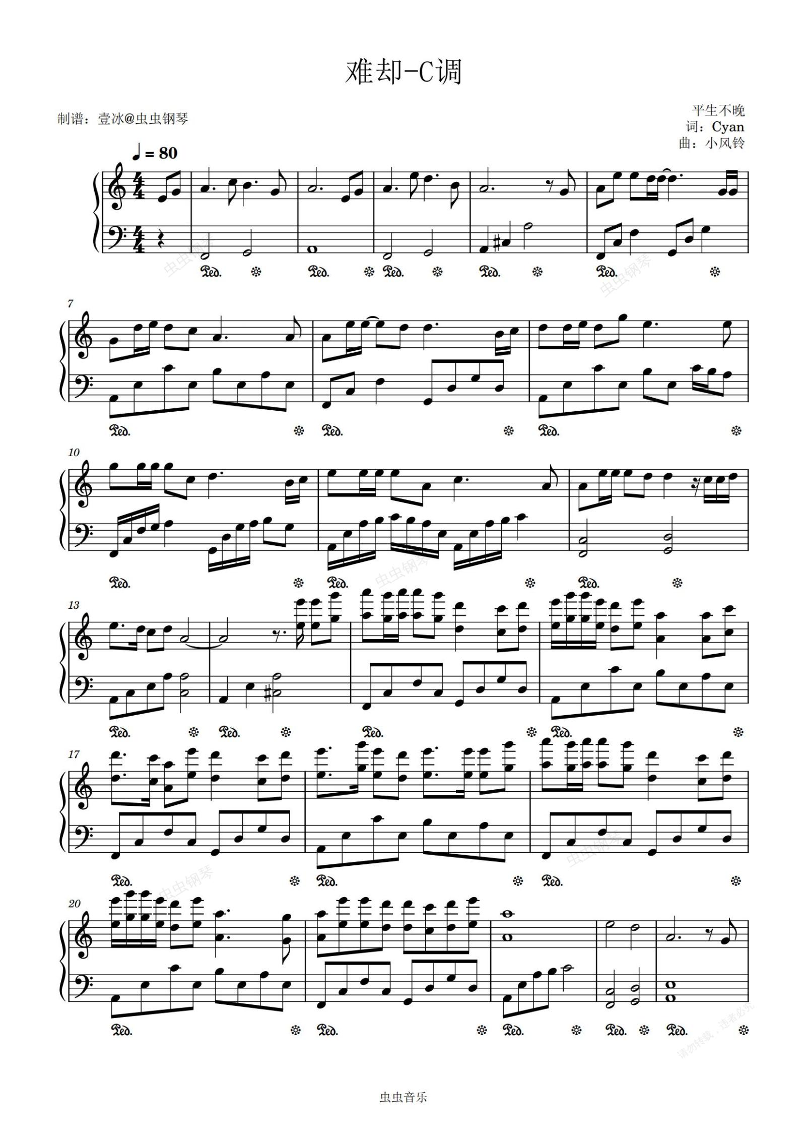 钢琴谱:难却//平生不晚-C调版 简单易上手
