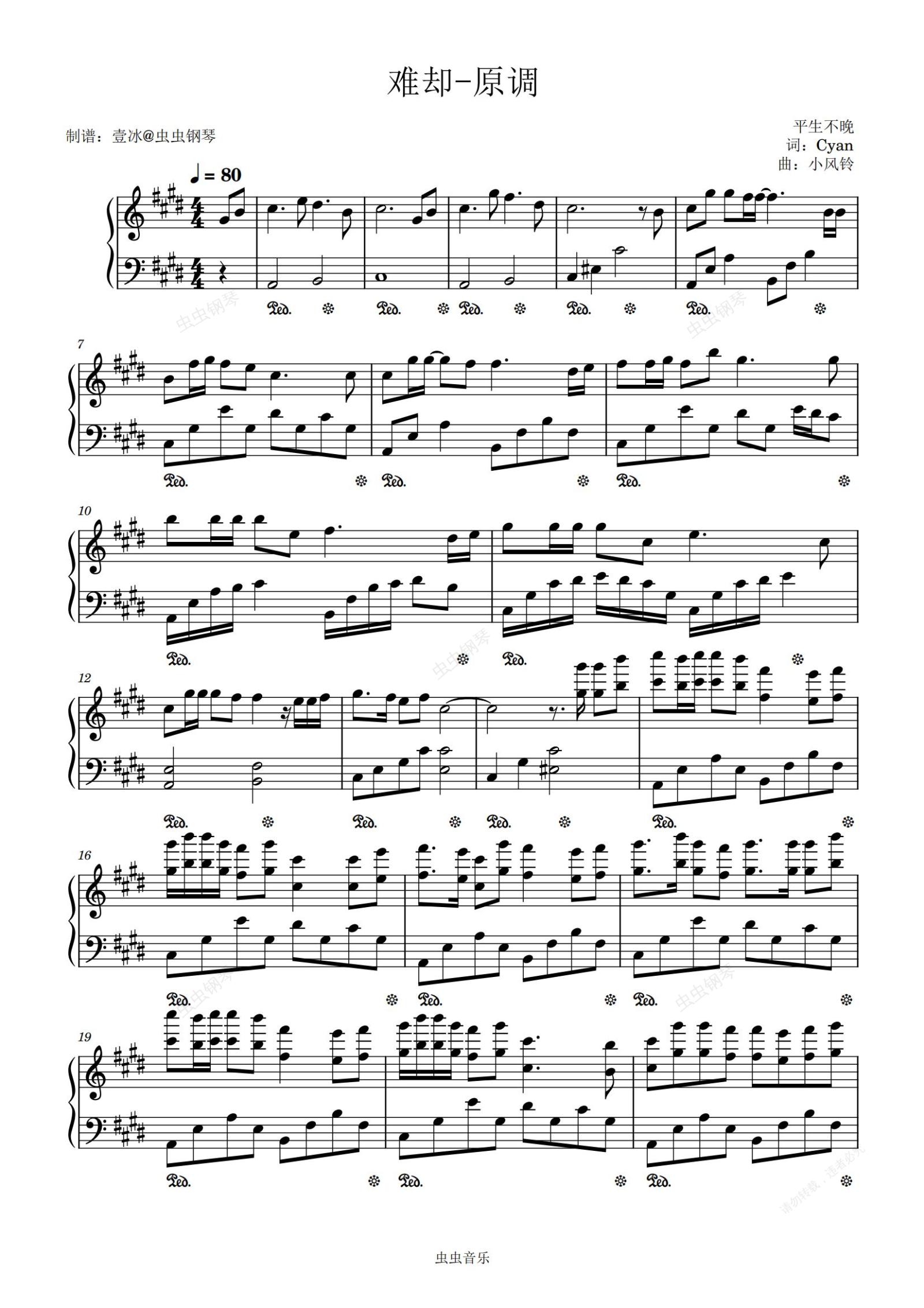 钢琴谱:难却//平生不晚-原调版 简单易上手