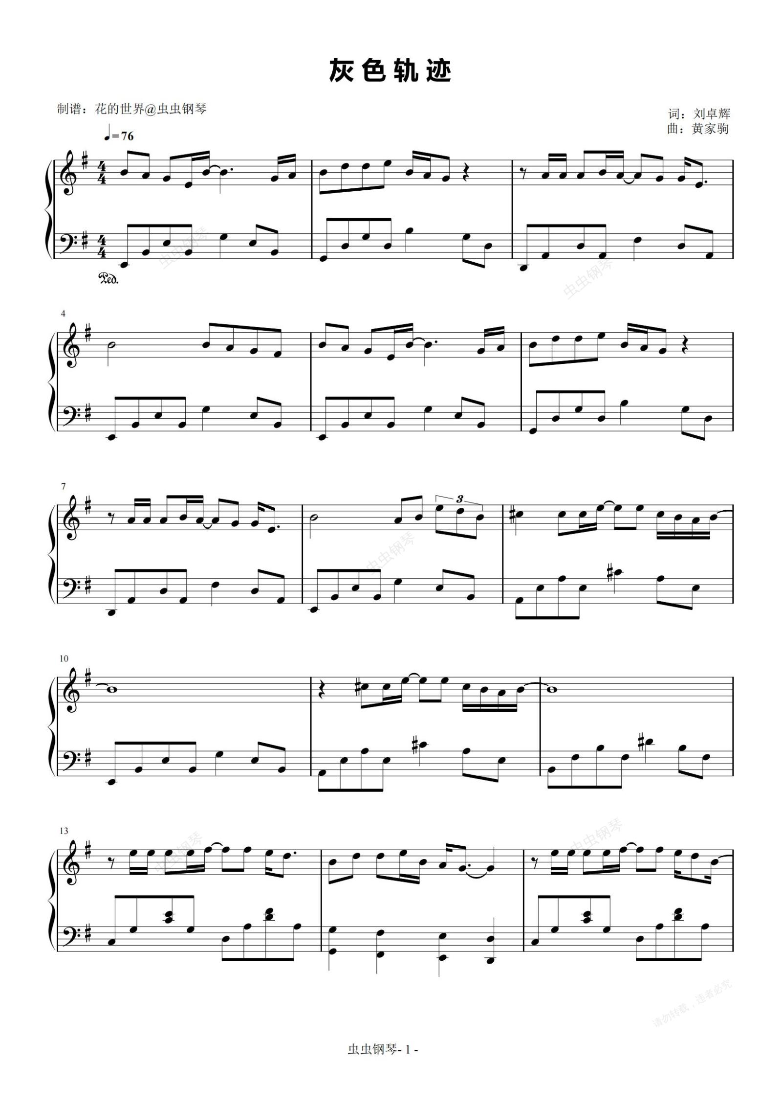钢琴谱:灰色轨迹 原调简易版 黄家驹 beyond 流行经典