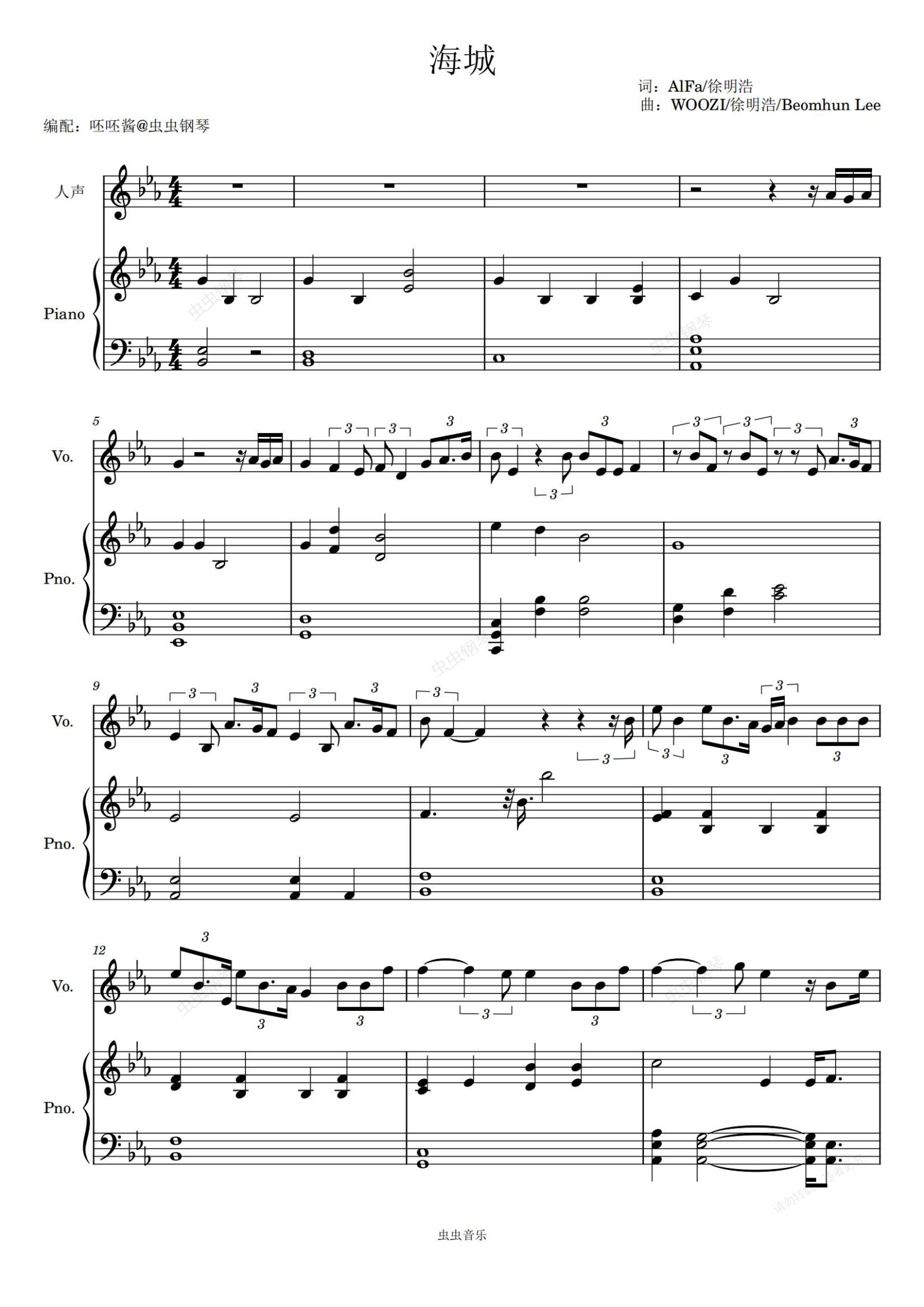 钢琴谱:海城【徐明浩】-Eb调-完美还原-弹唱伴奏