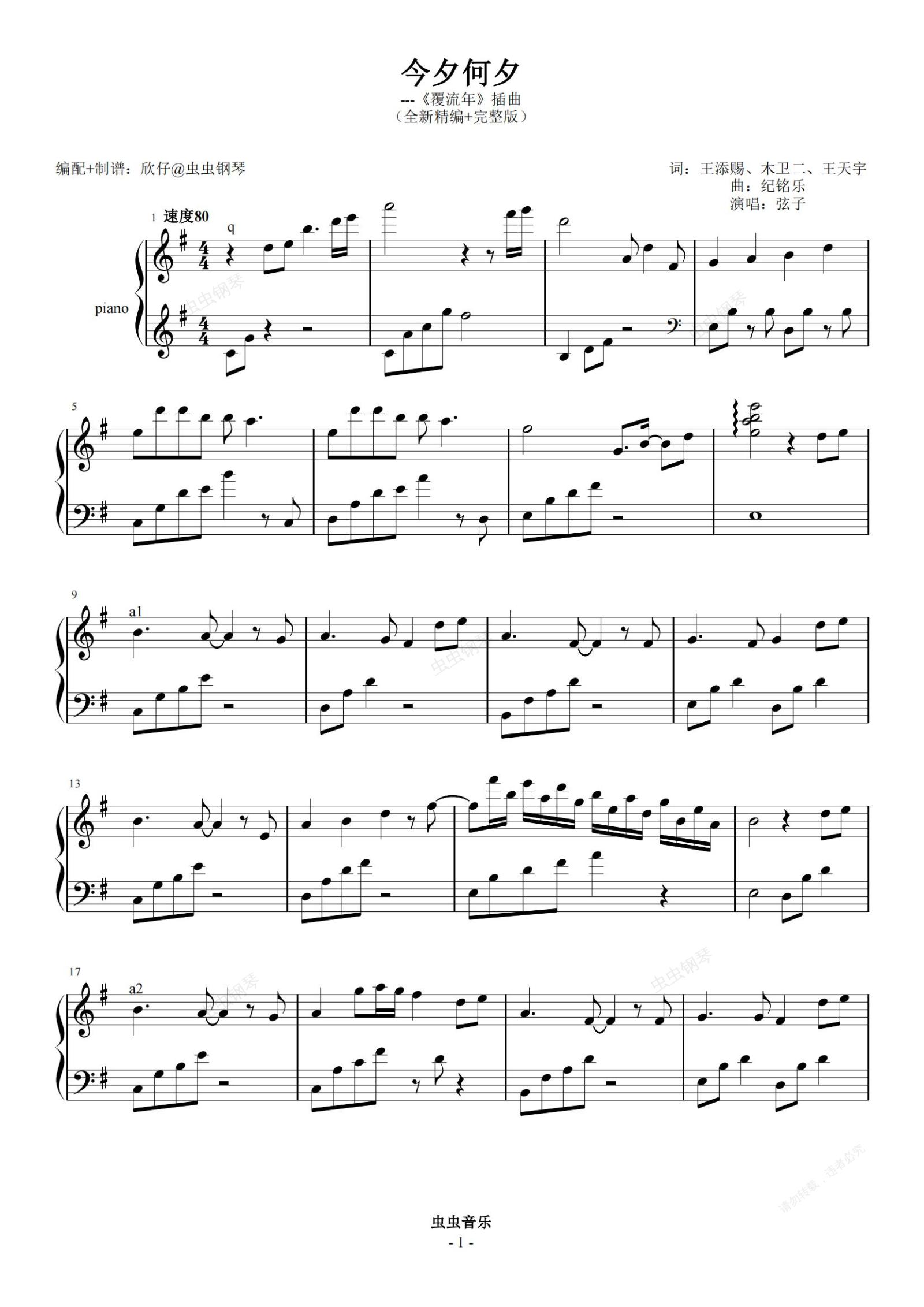 钢琴谱:弦子-e《今夕何夕》(《覆流年》插曲、完整版)