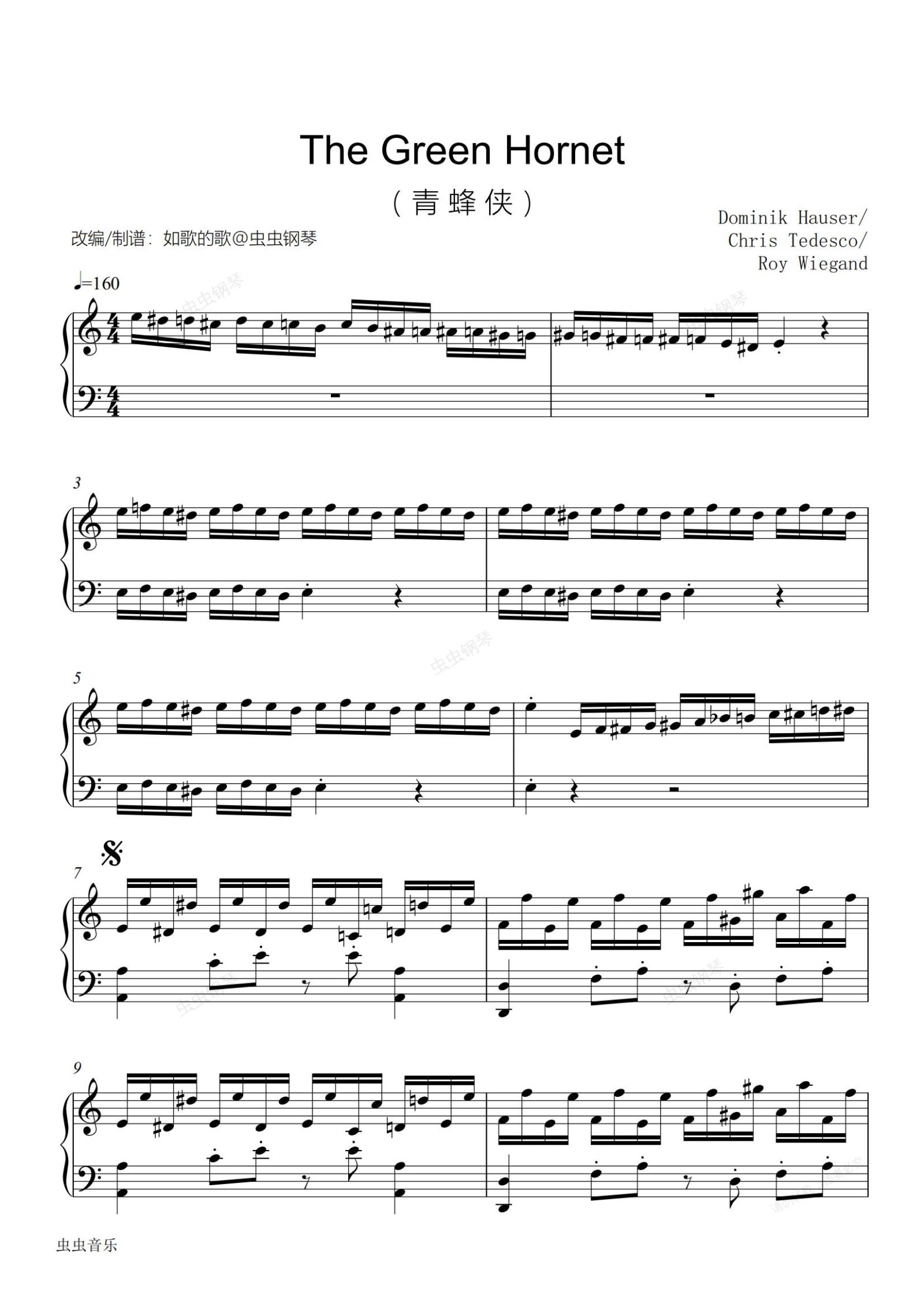 钢琴谱:The Green Hornet 青蜂侠-李小龙经典电影主题曲