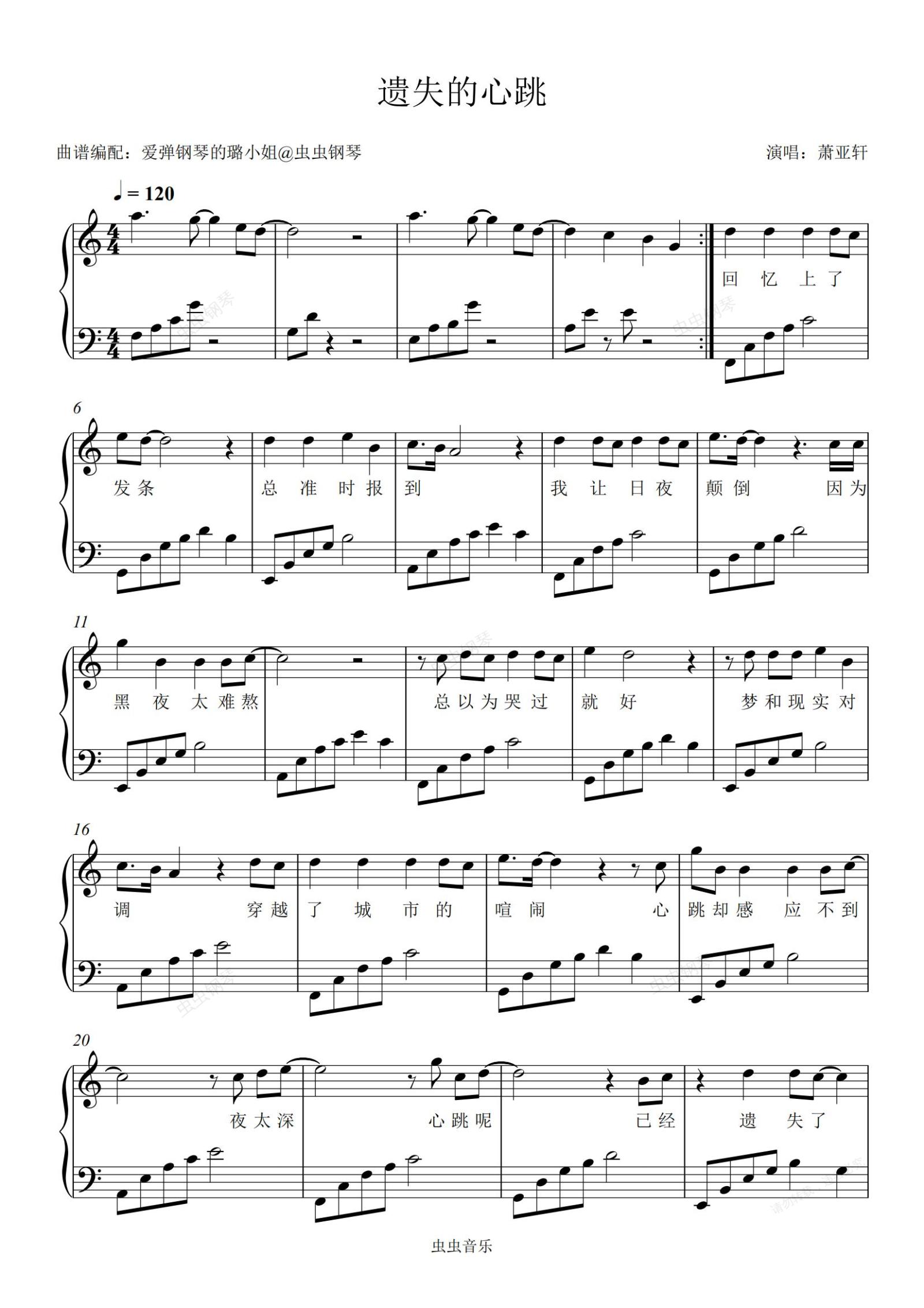 钢琴谱:遗失的心跳 - C调简单版 - 附歌词