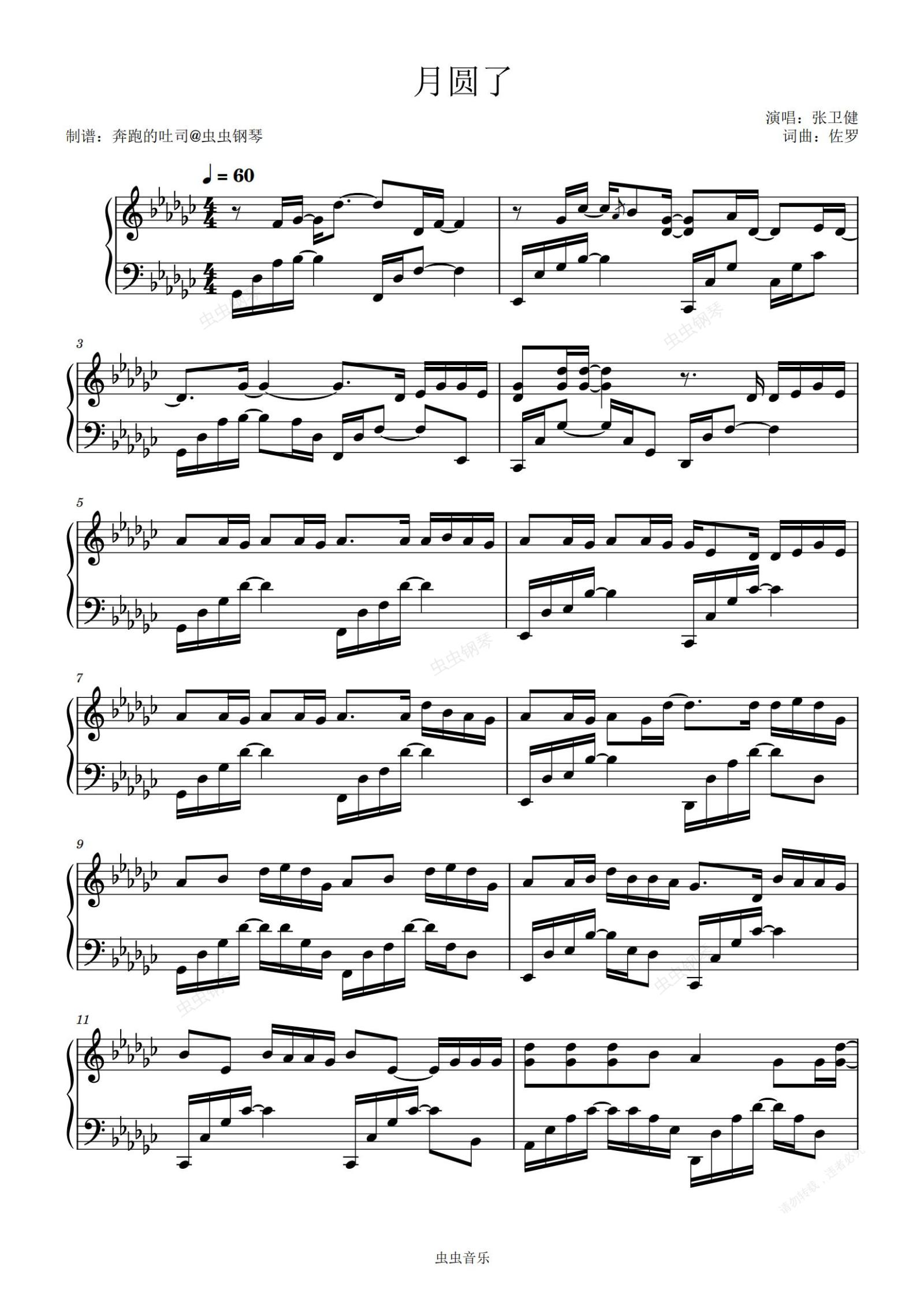 钢琴谱:月圆了