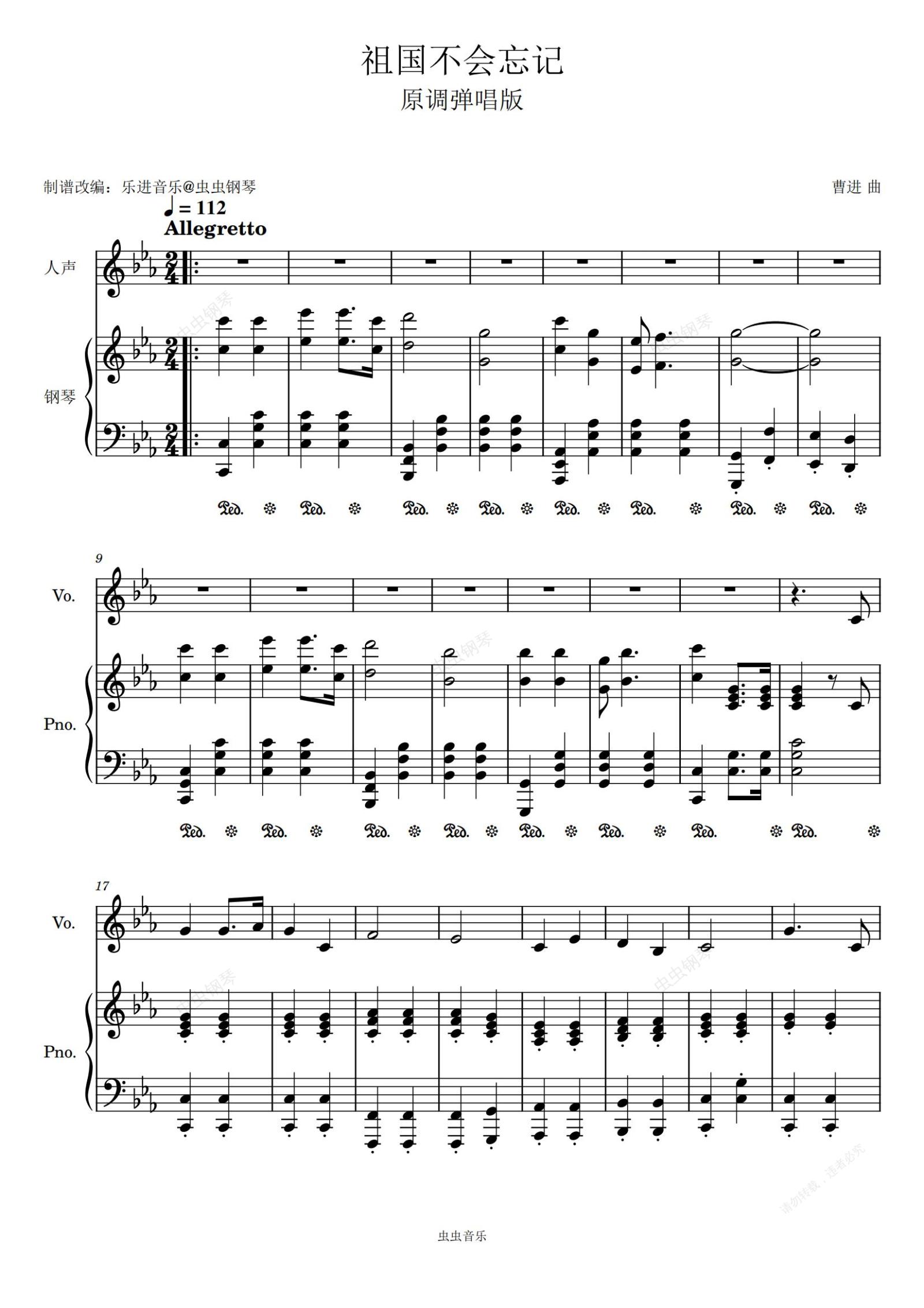钢琴谱:《祖国不会忘记》弹唱伴奏精编版