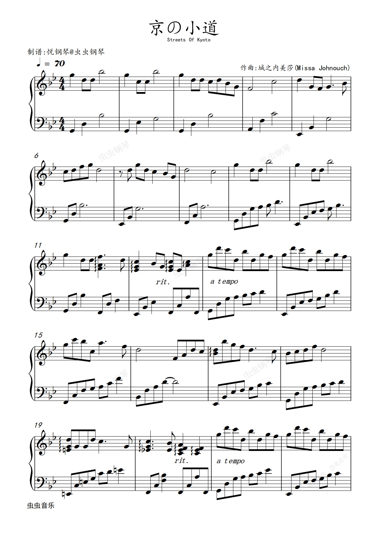 钢琴谱:京の小道(Streets Of Kyoto) 和平之月·都
