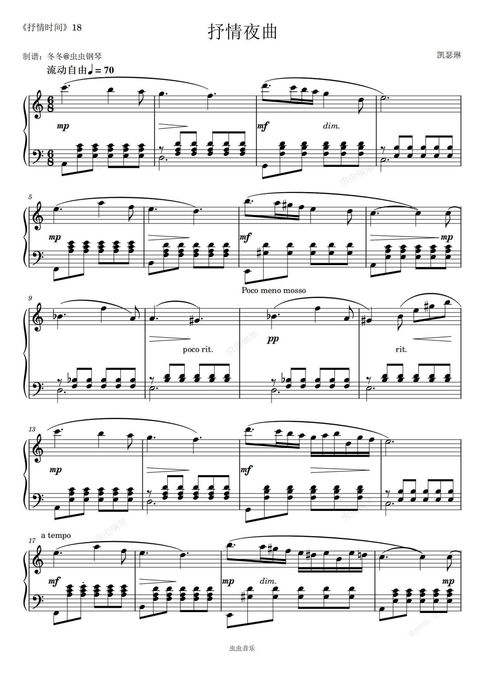 钢琴谱:抒情夜曲
