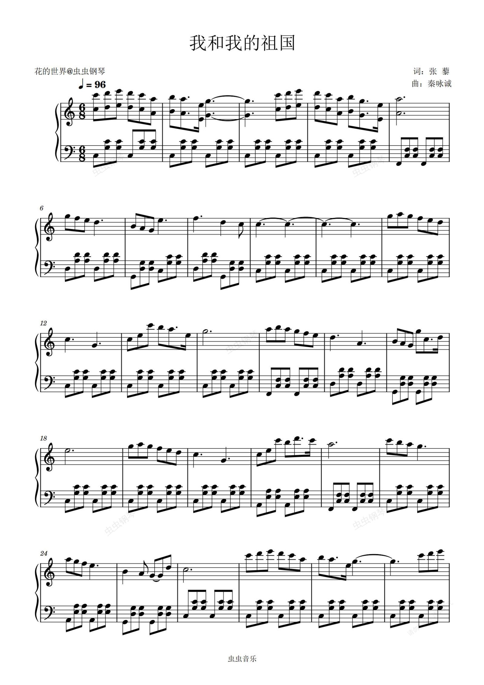 钢琴谱:我和我的祖国 C调简易版 李谷一 流行经典
