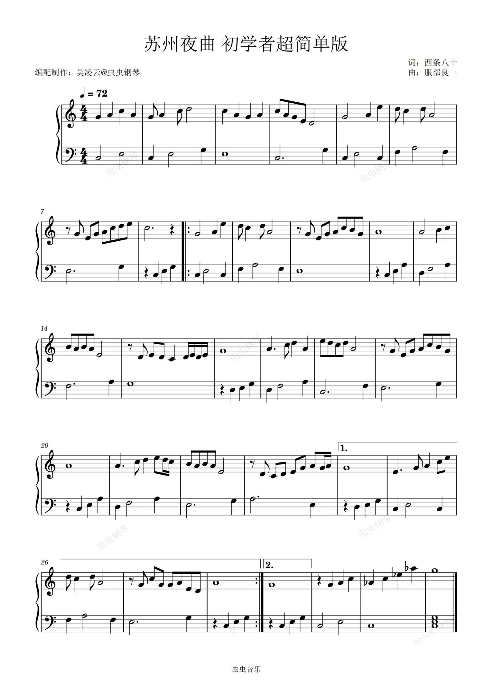钢琴谱:苏州夜曲 李香兰 初学者超简单版带指法