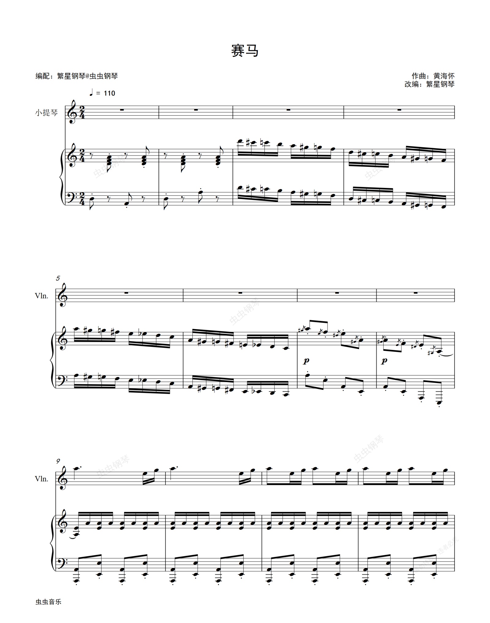 钢琴谱:《赛马》小提琴+钢琴伴奏