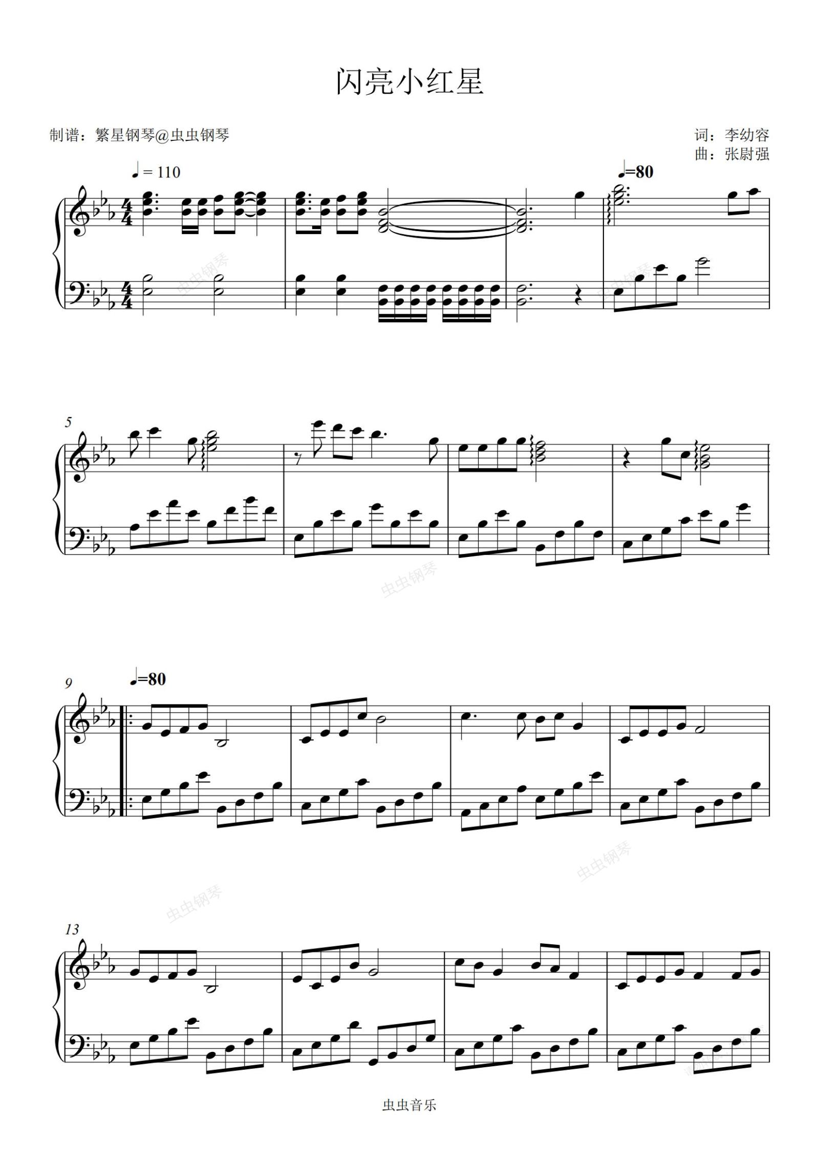 钢琴谱:闪亮小红星