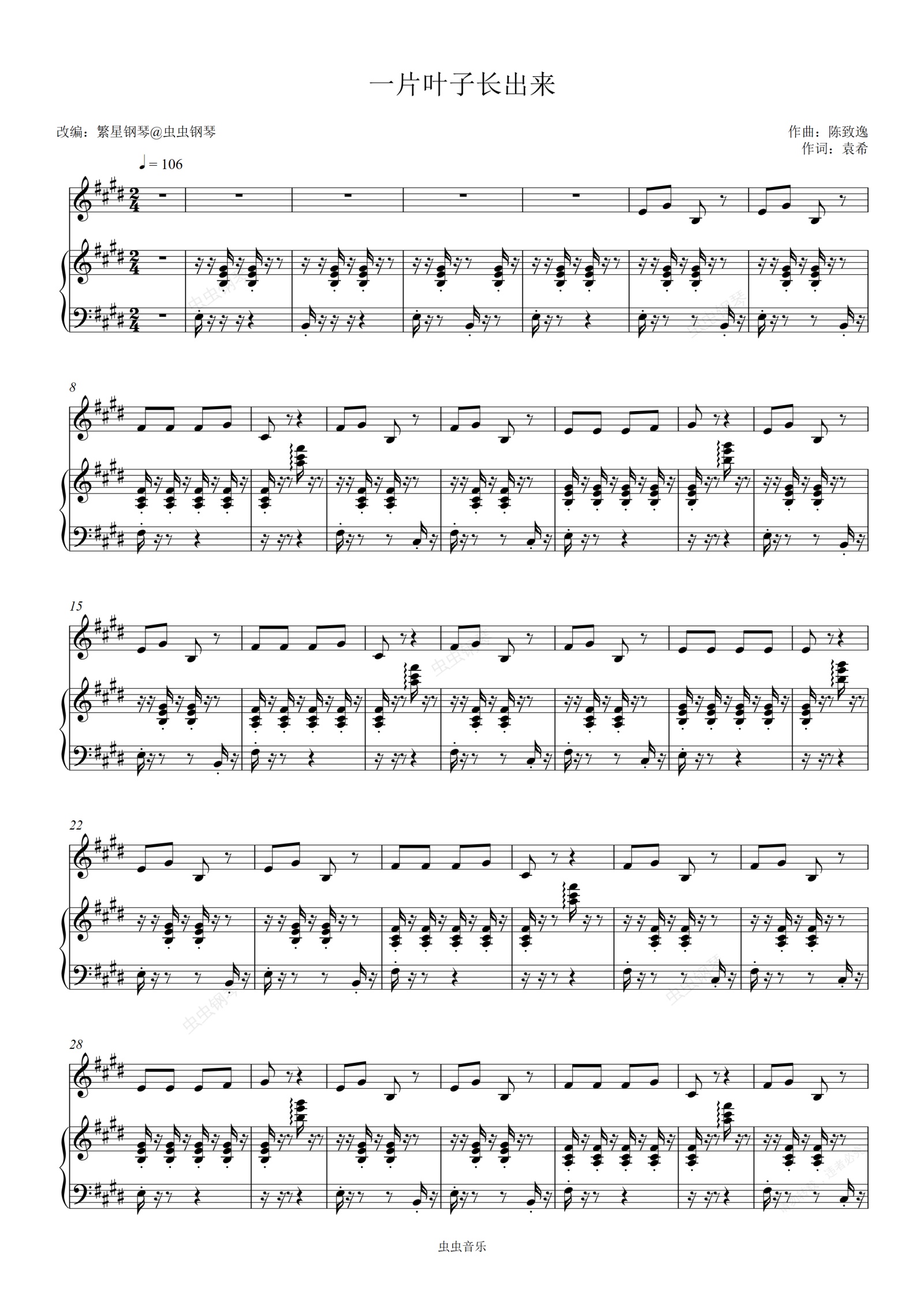 钢琴谱:一片叶子长出来