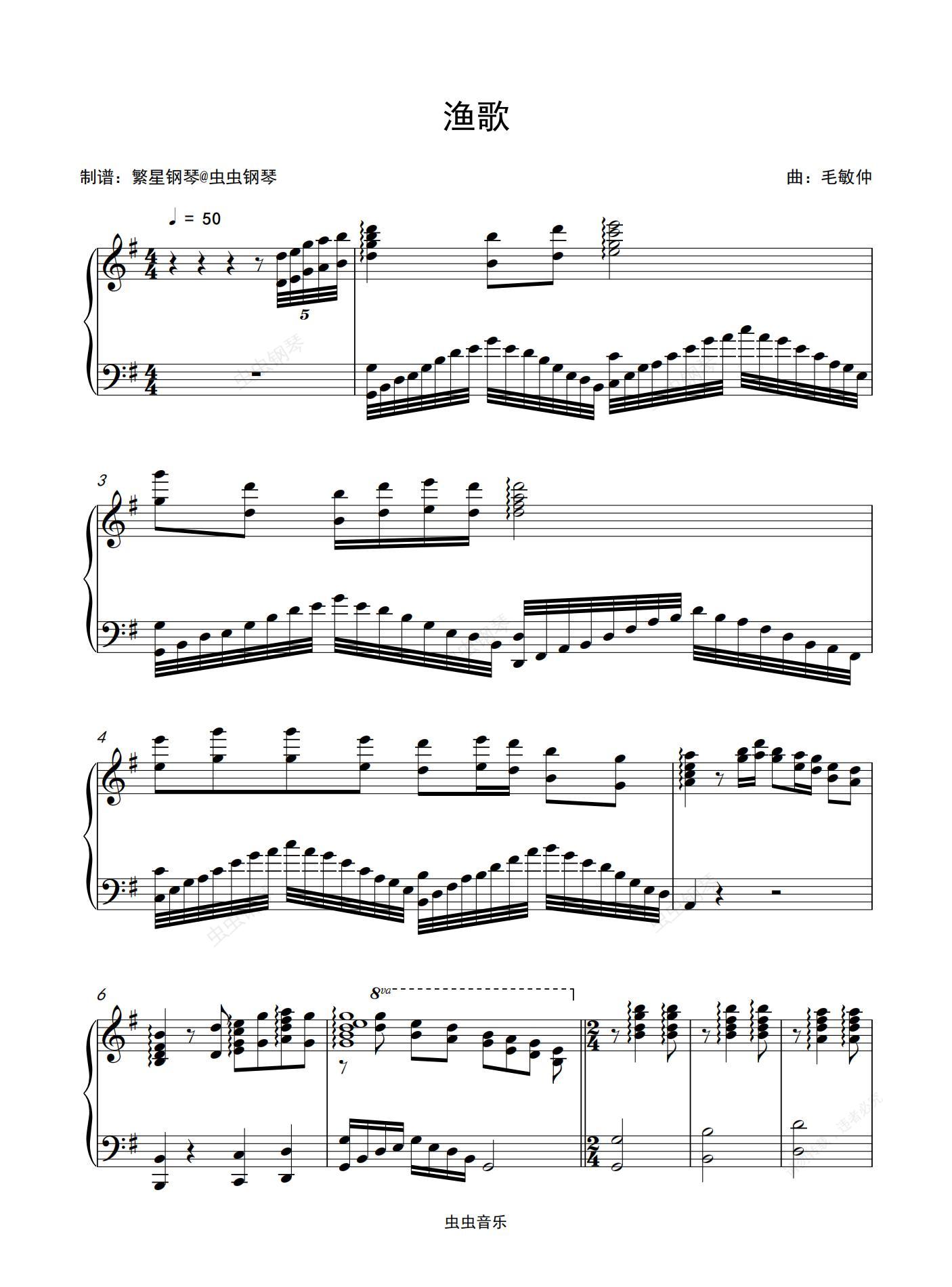 钢琴谱:渔歌
