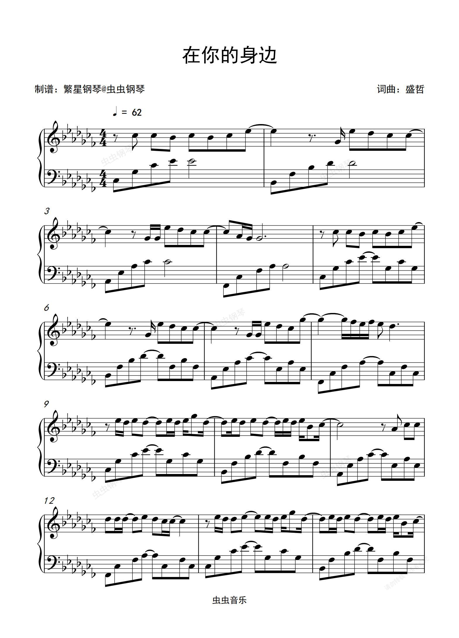 钢琴谱:在你的身边