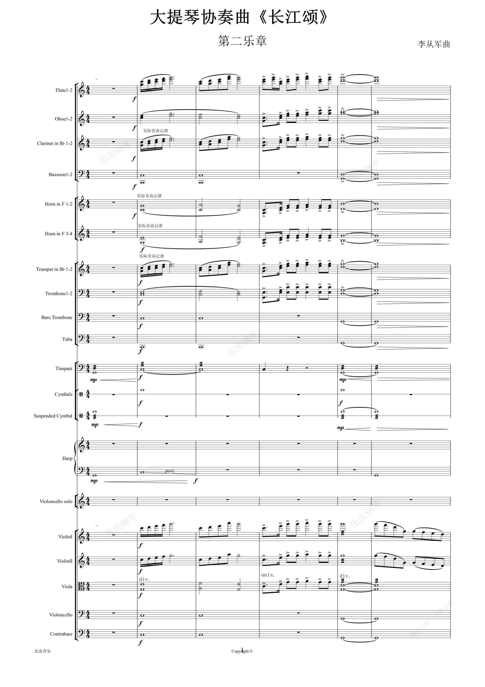 钢琴谱:长江颂大提琴协奏曲第二乐章