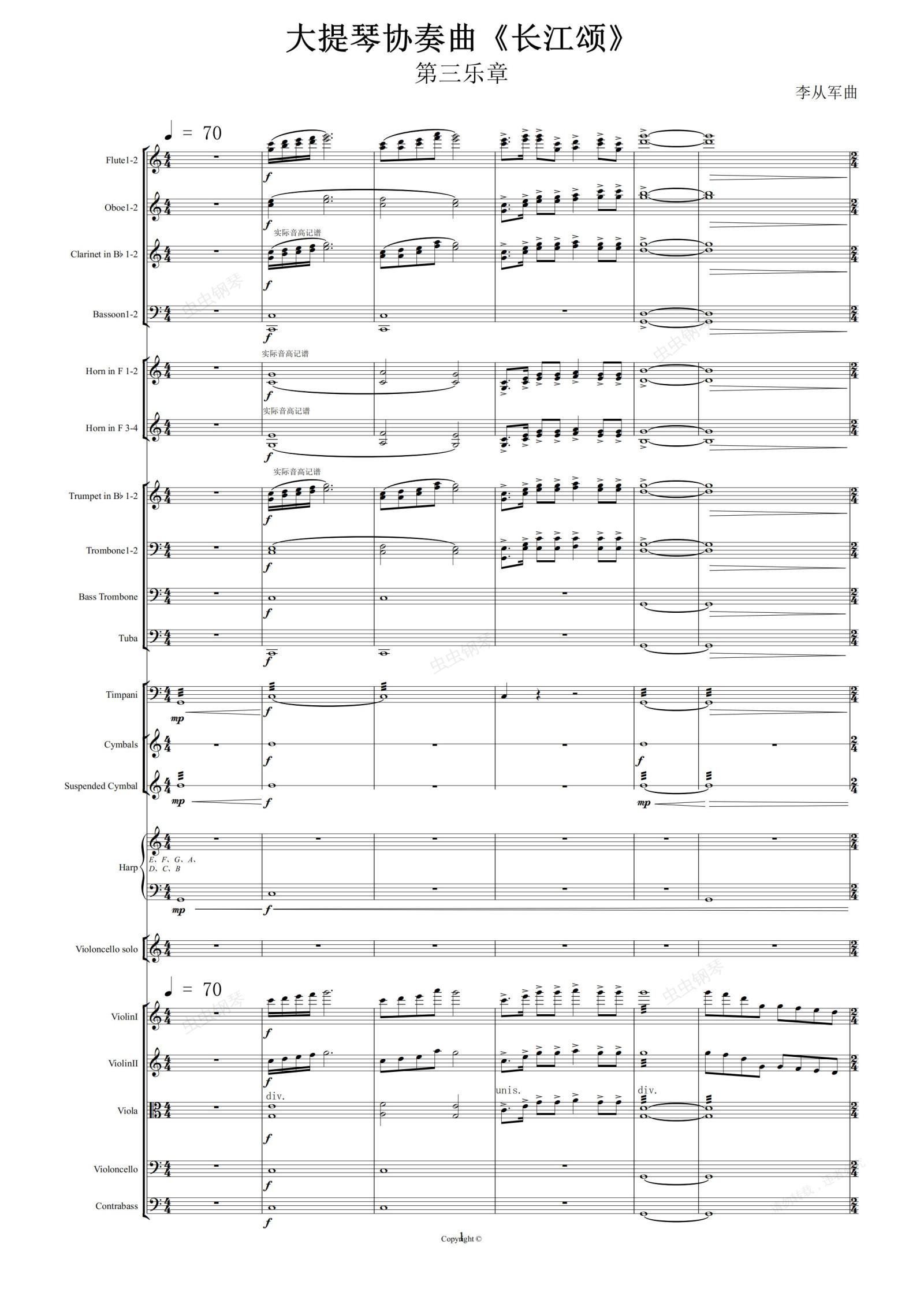 钢琴谱:长江颂大提琴协奏曲第三乐章