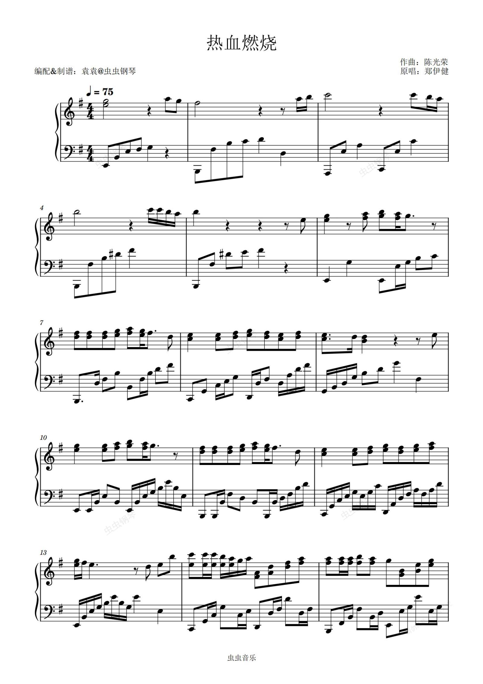 钢琴谱:热血燃烧 郑伊健 原调 简易演奏版
