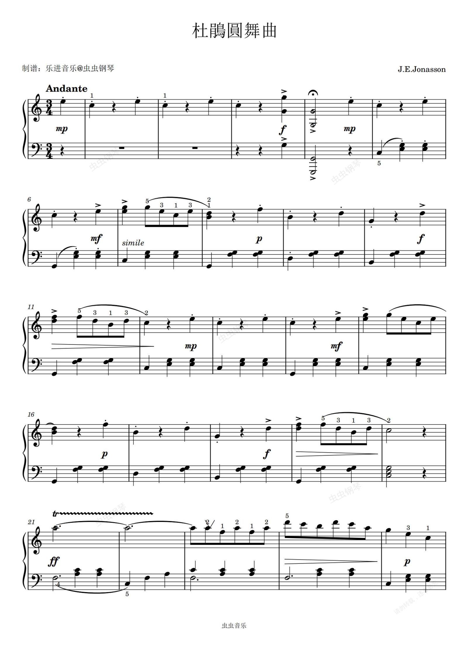 钢琴谱:《杜鹃圆舞曲》原版带指法 简单易弹
