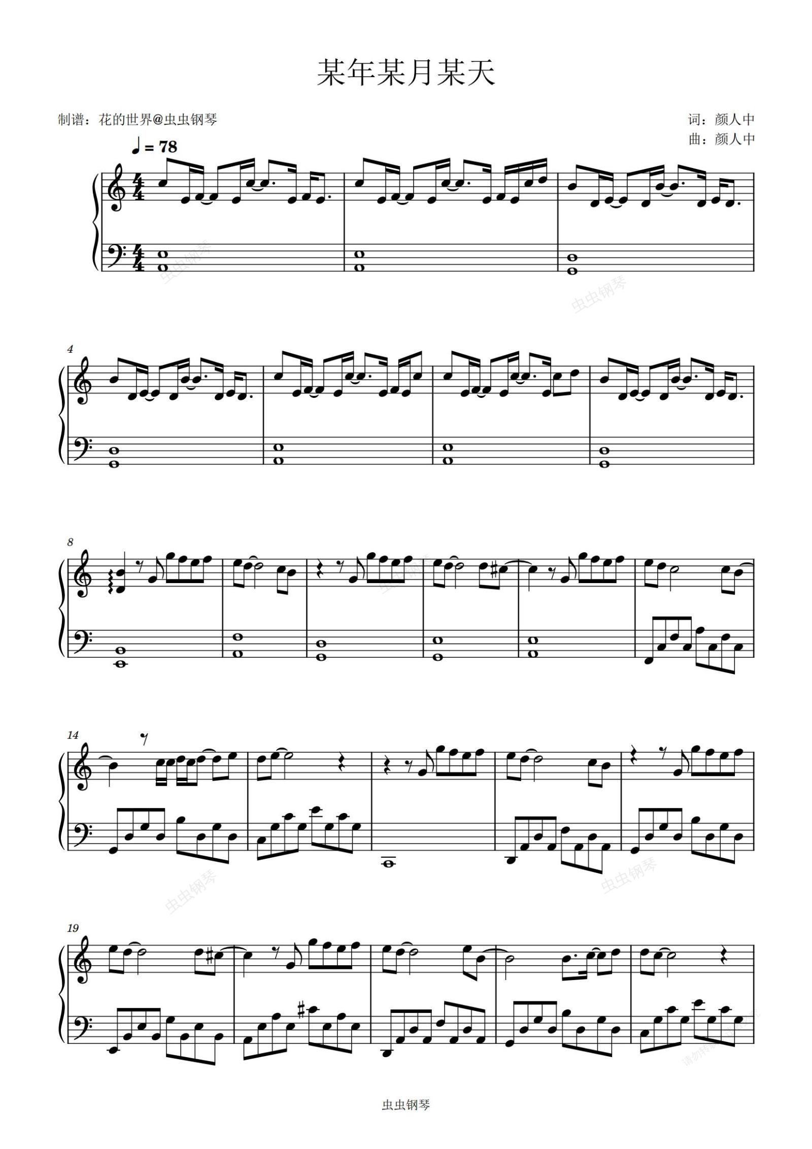 钢琴谱:某年某月某天 C调简易版 颜人中