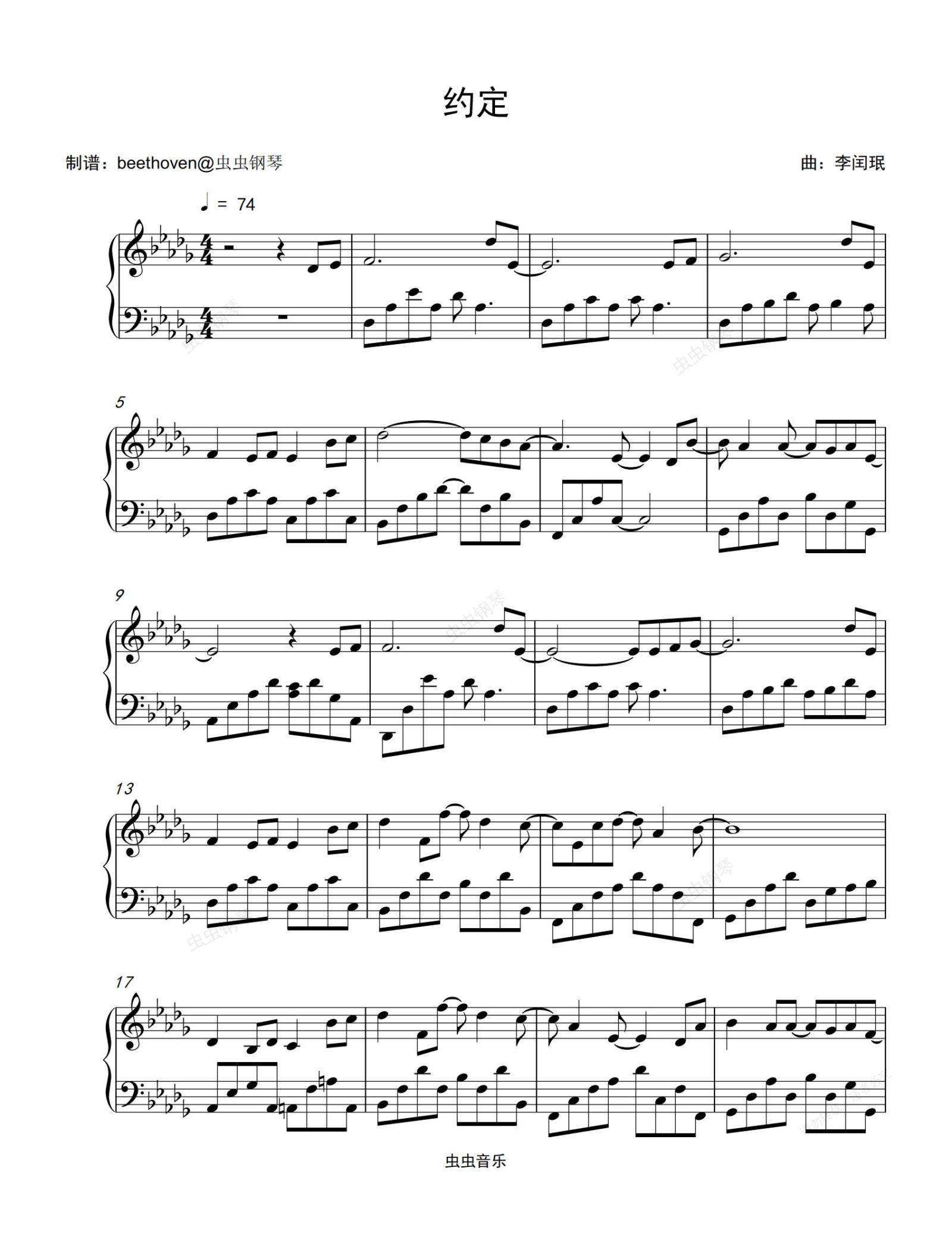 钢琴谱:约定-李闰珉