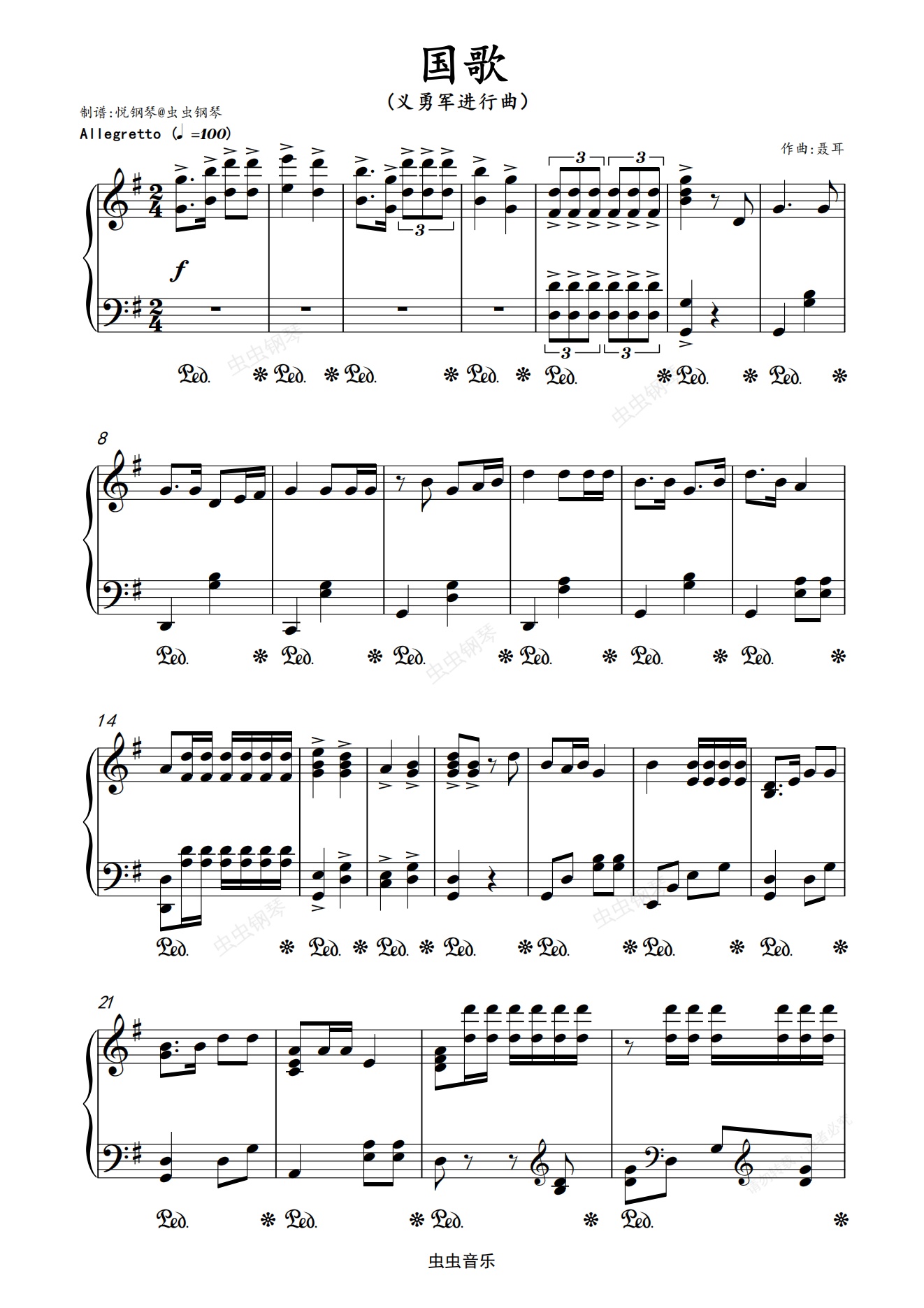 钢琴谱:义勇军进行曲(国歌)