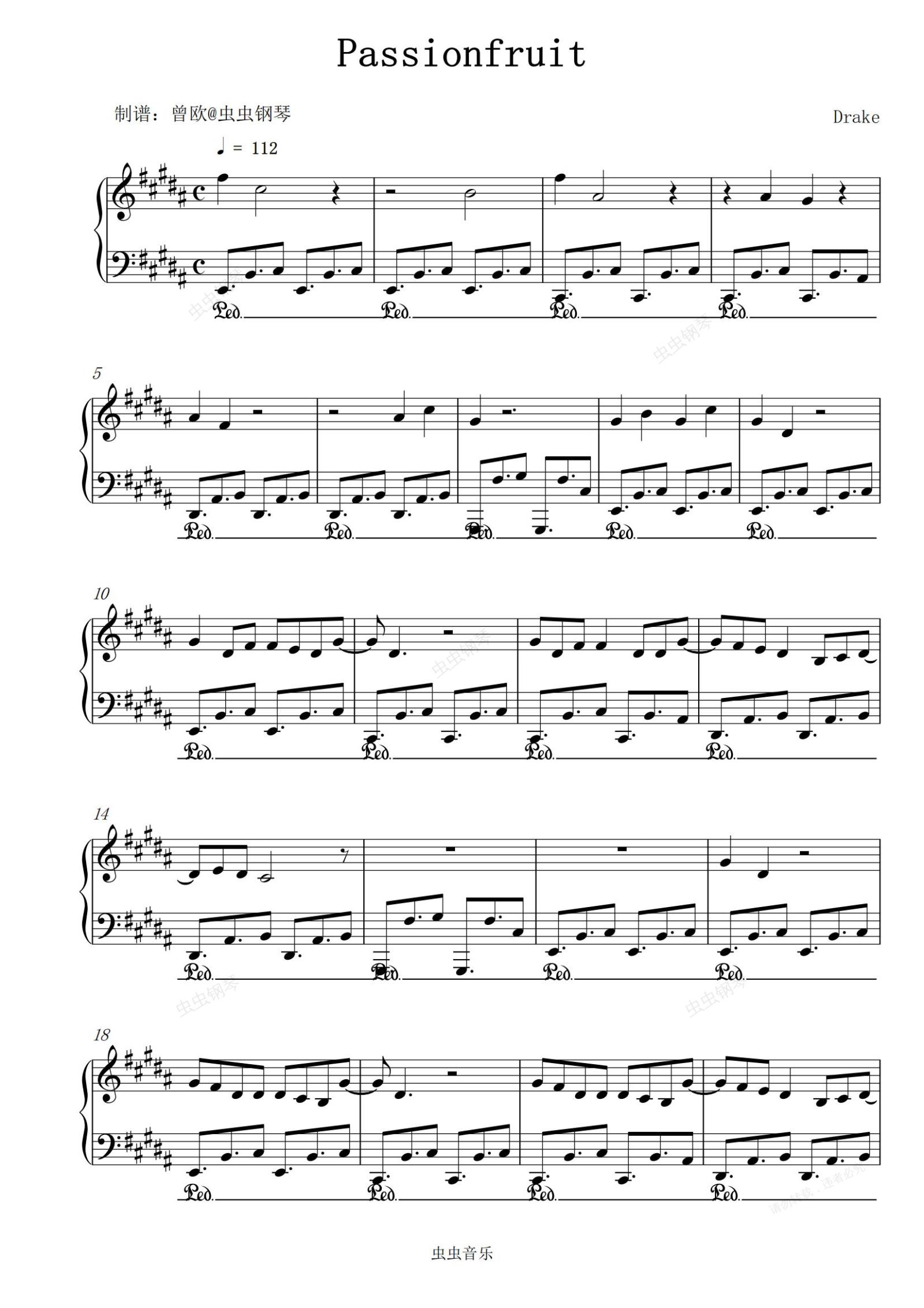 钢琴谱:Passionfruit - Drake (免费易弹)