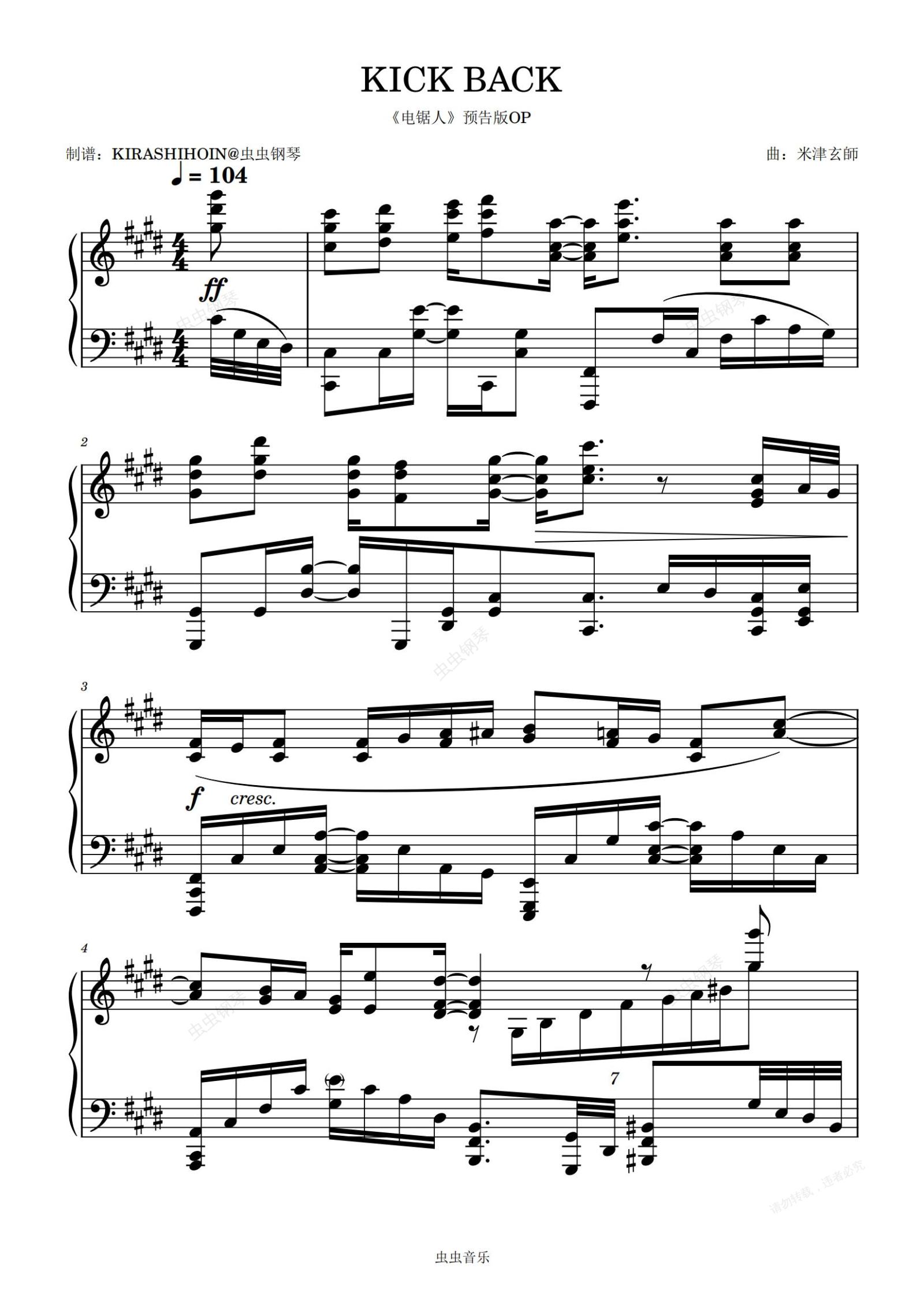 钢琴谱:KICK BACK(《电锯人》预告版OP)- 米津玄师