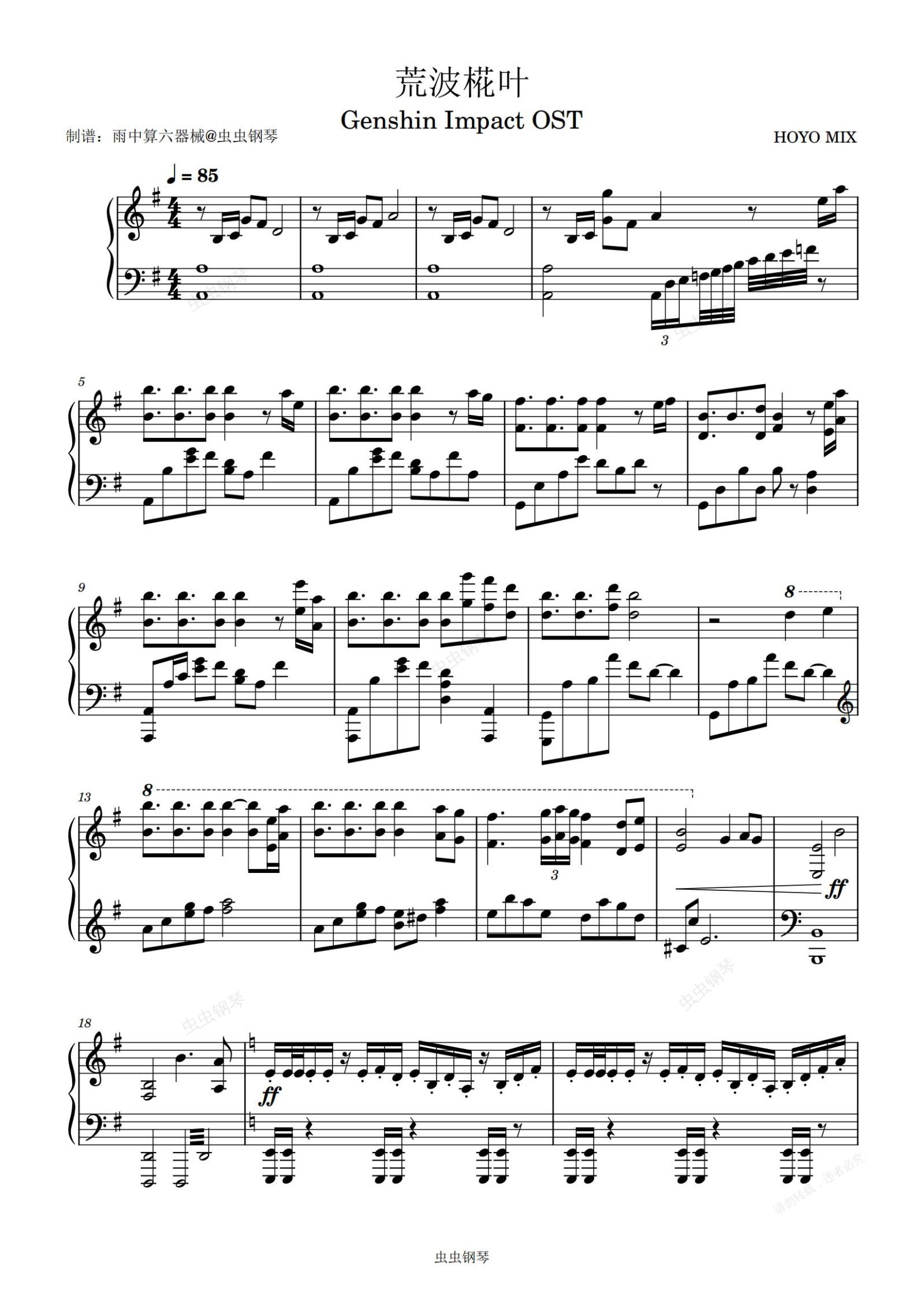 钢琴谱:荒波椛叶 枫原万叶PV音乐