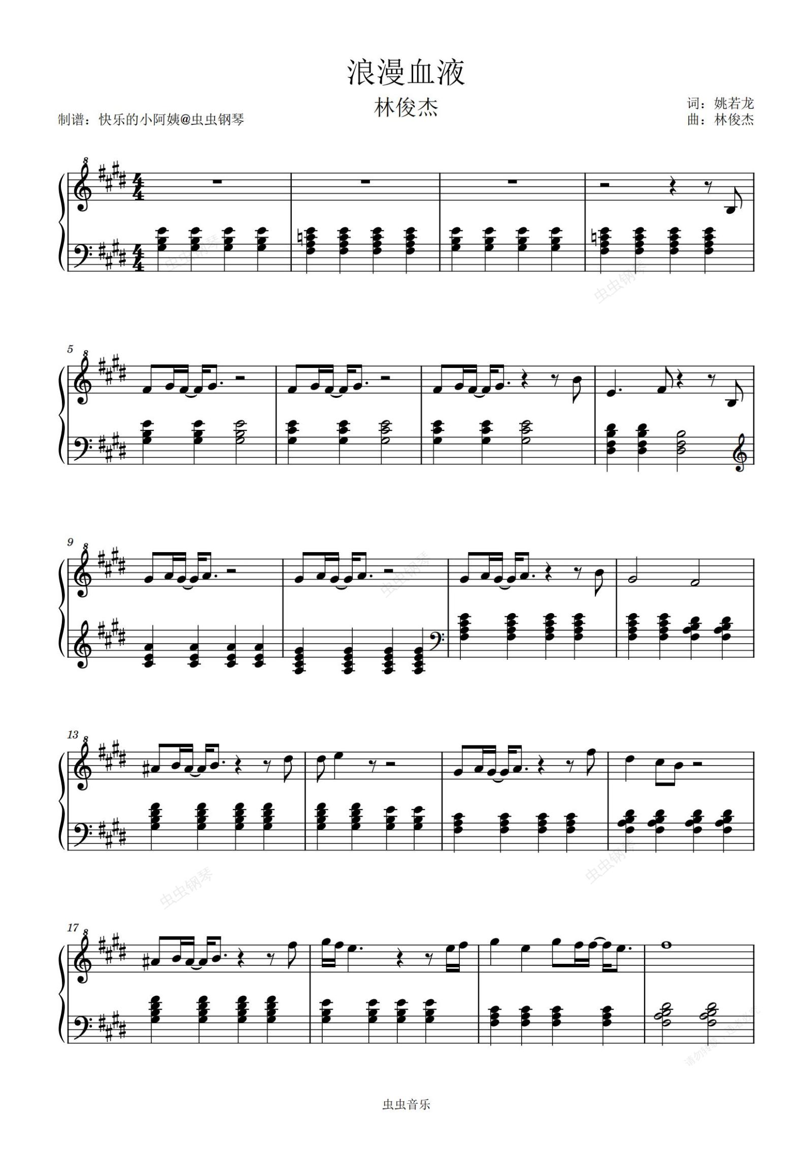 钢琴谱:浪漫血液-简易版