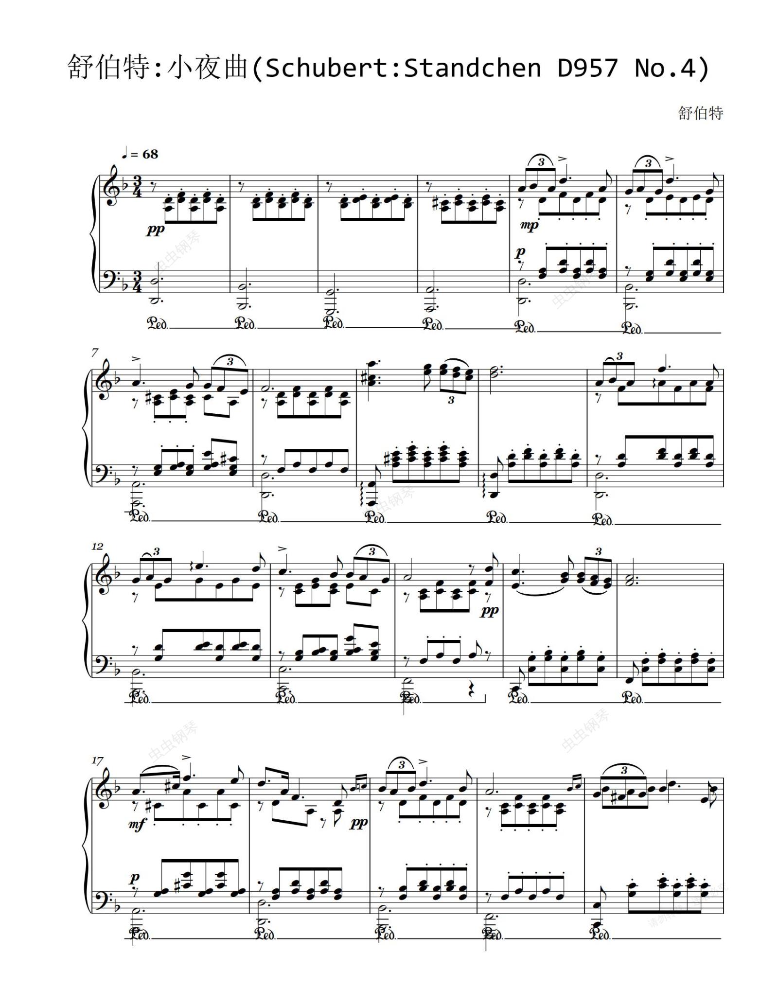 钢琴谱:舒伯特 小夜曲(SchubertStandchen D957 No.4)