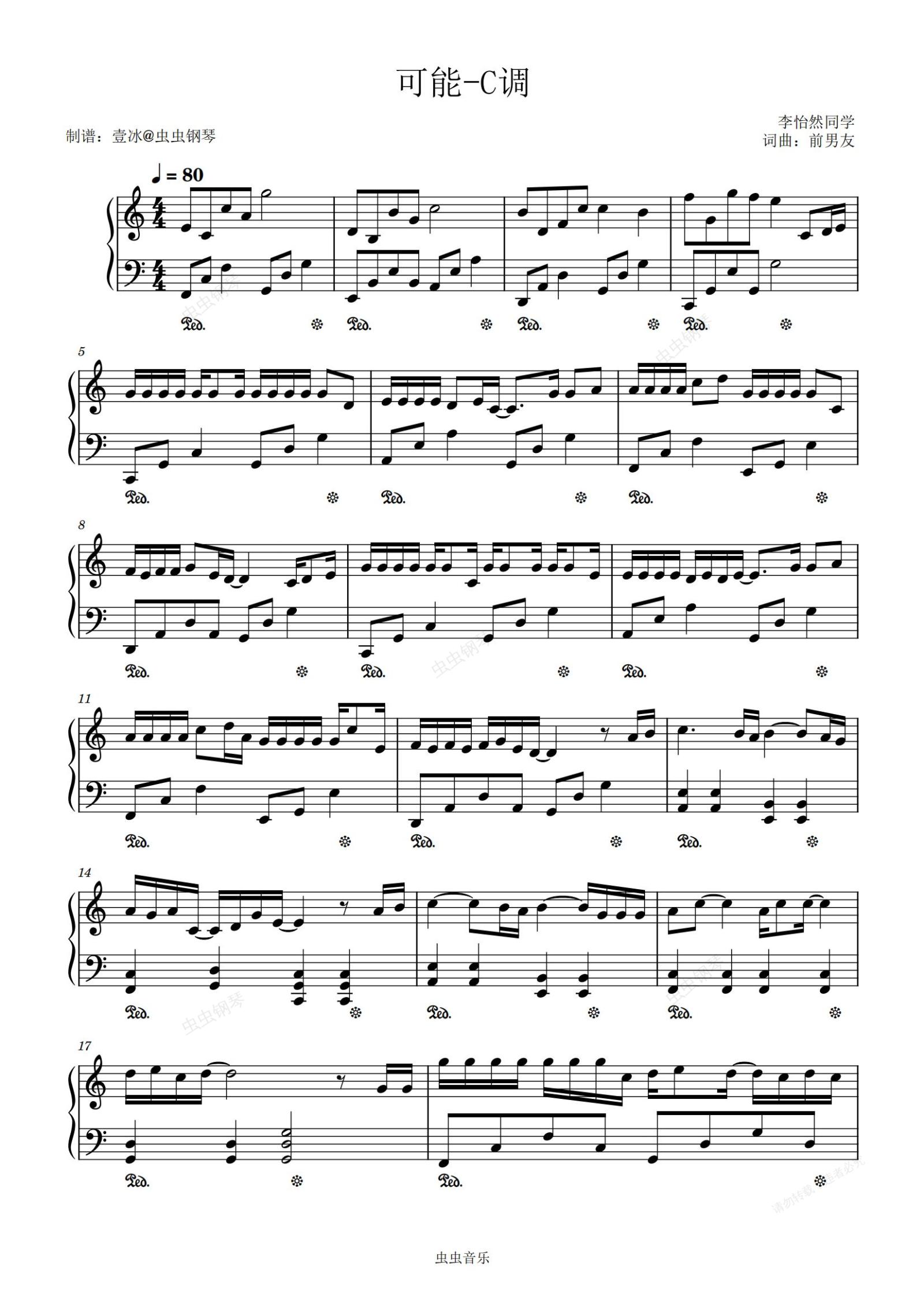钢琴谱:可能//李怡然同学-C调 简单易上手