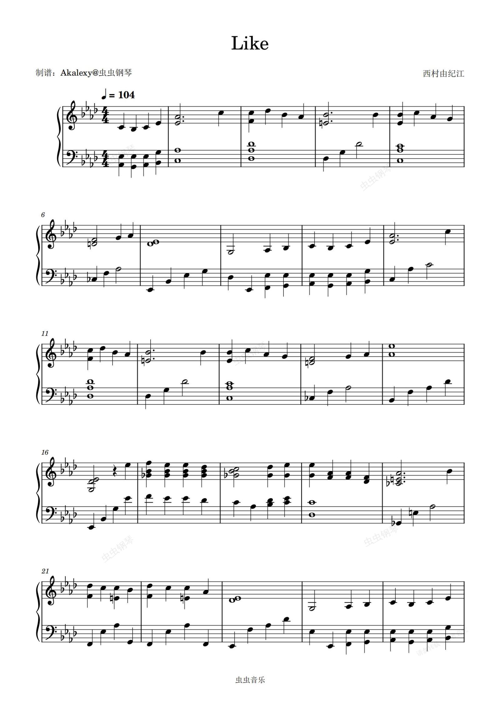 钢琴谱:Like