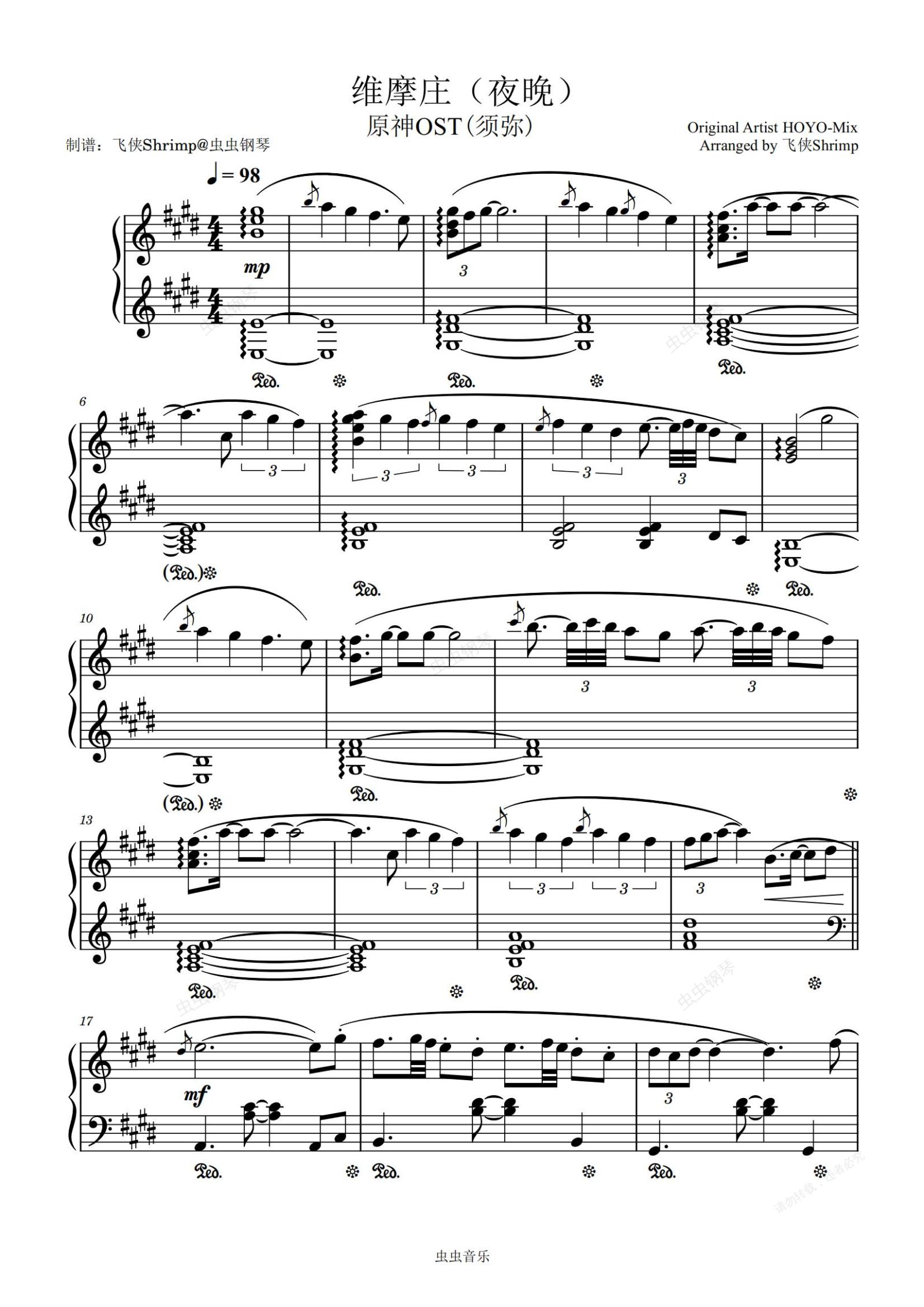 钢琴谱:【原神OST】维摩庄(夜晚)