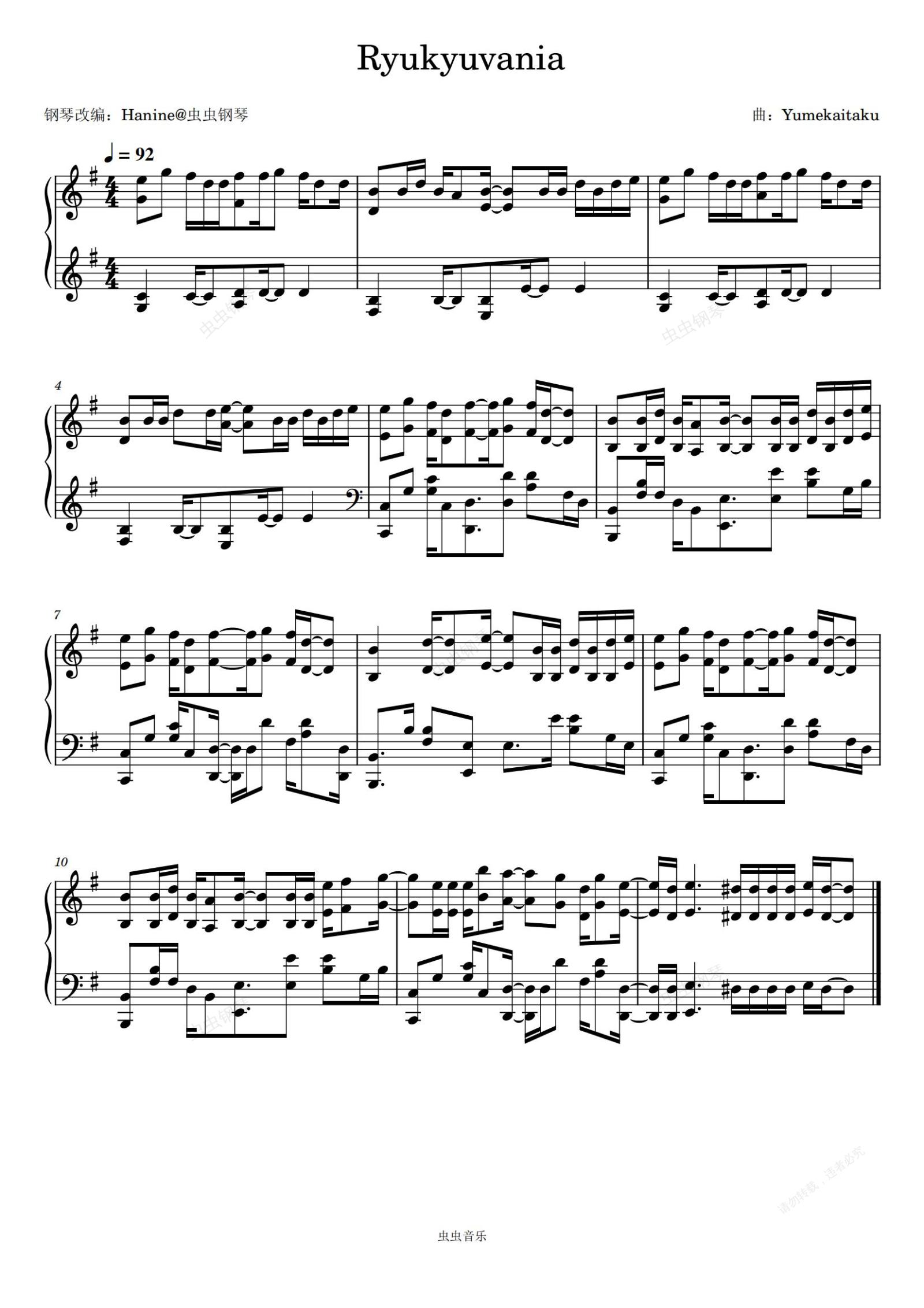 钢琴谱:Ryukyuvania(Hanine改编—原调独奏)