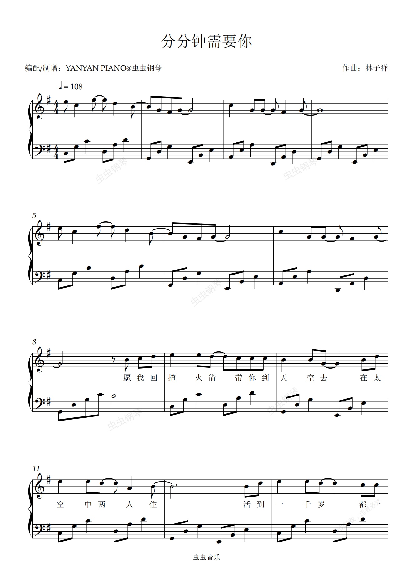 钢琴谱:好听易弹【分分钟需要你】林子祥/林忆莲